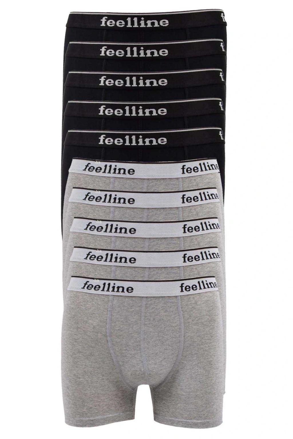 10 adet Feelline Siyah ve Gri Pamuklu Doğal Likralı Erkek Boxer