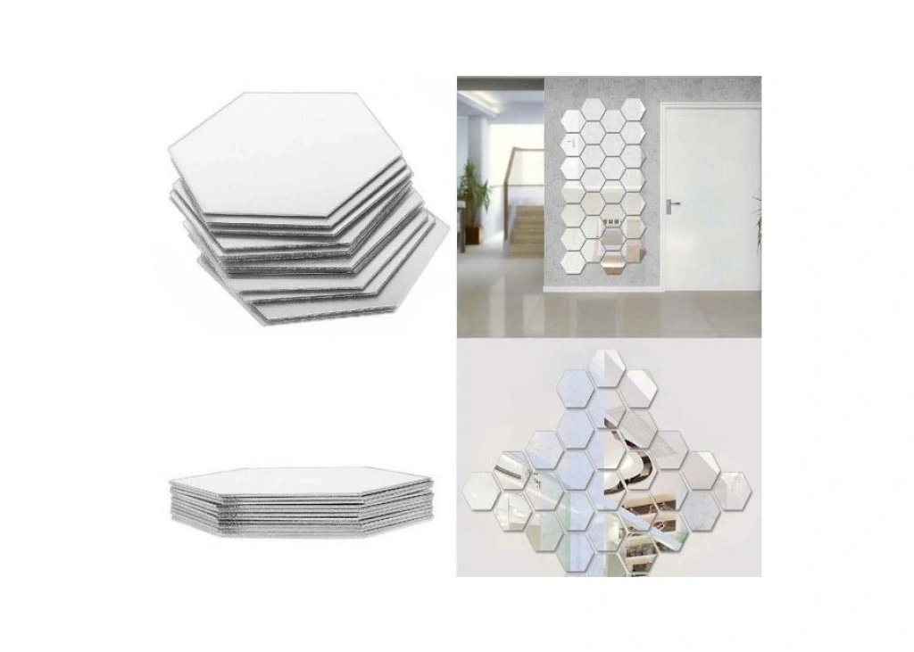 12 Adet Yapışkanlı Dekoratif Akrilik Ayna Altıgen