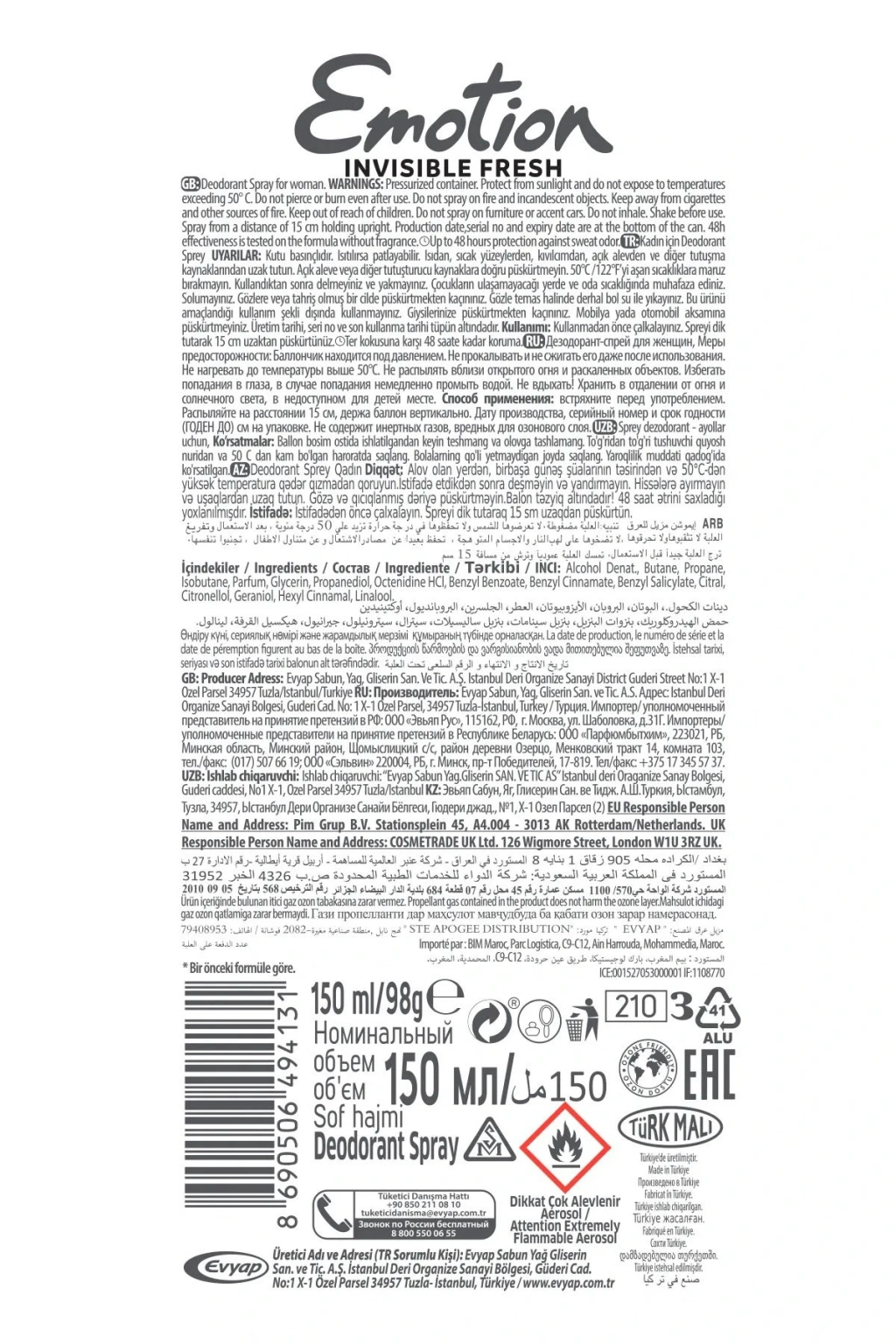 2 Adet Emotion Invisible Fresh Black & White Kadın Deodorant 150ml Vegan, Leke Bırakmaz