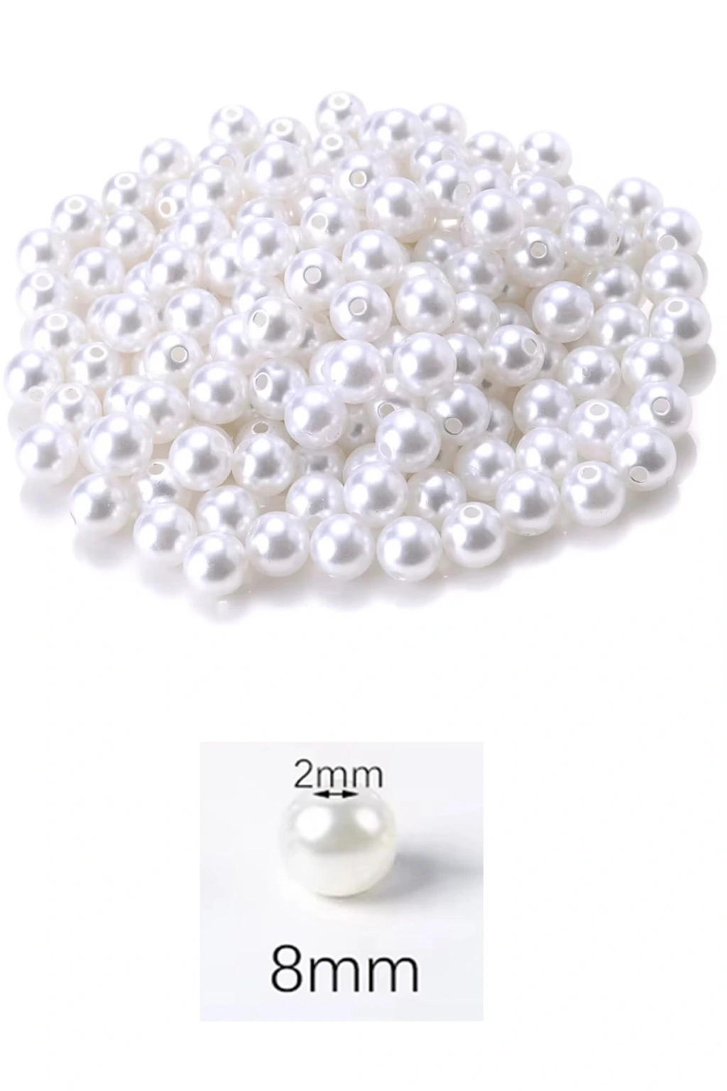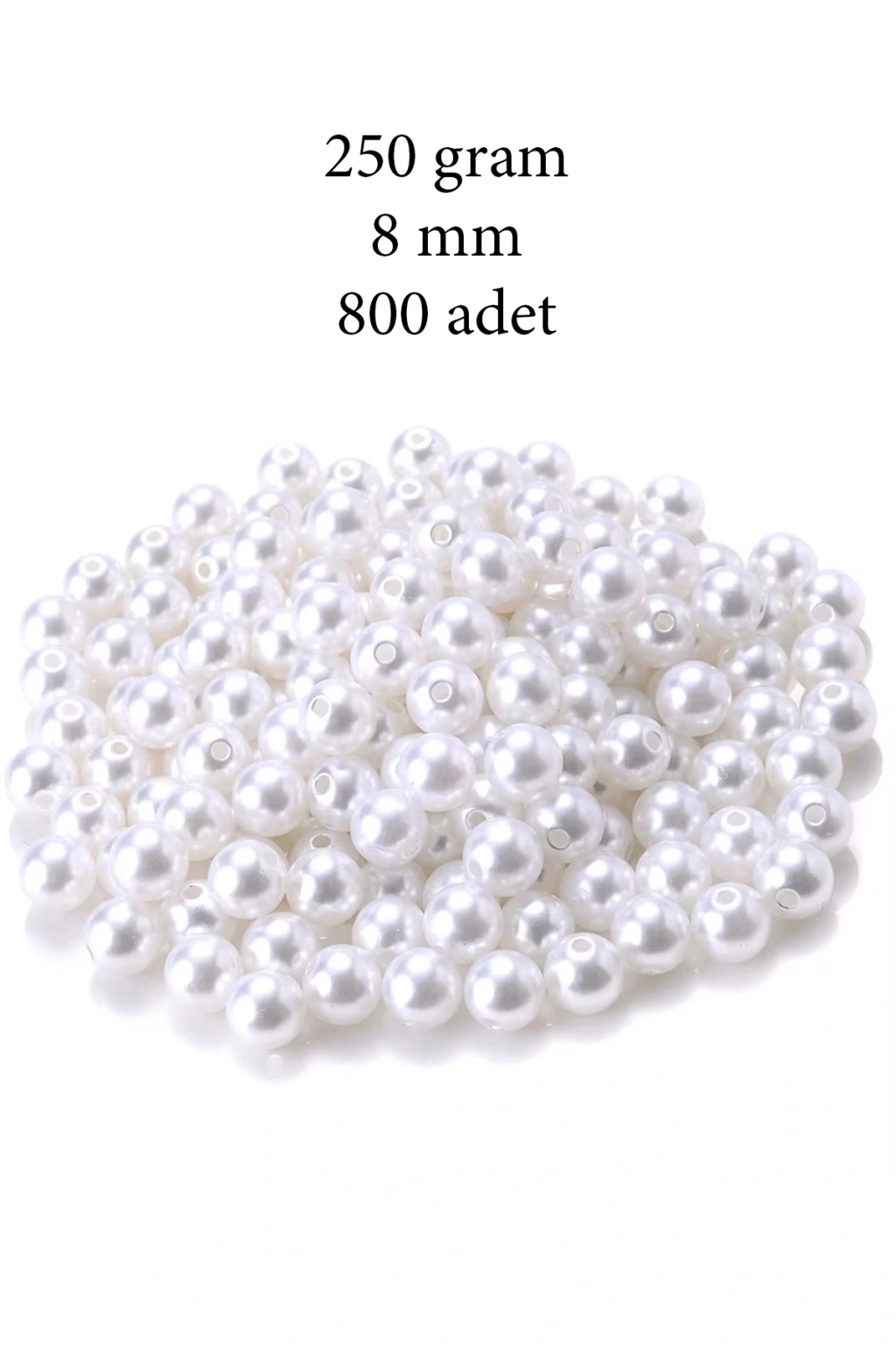 | 250 gram 8mm Beyaz Renk Plastik İnci Boncuk Çanta ve Takı Yapım Boncuğu (~800 adet) |