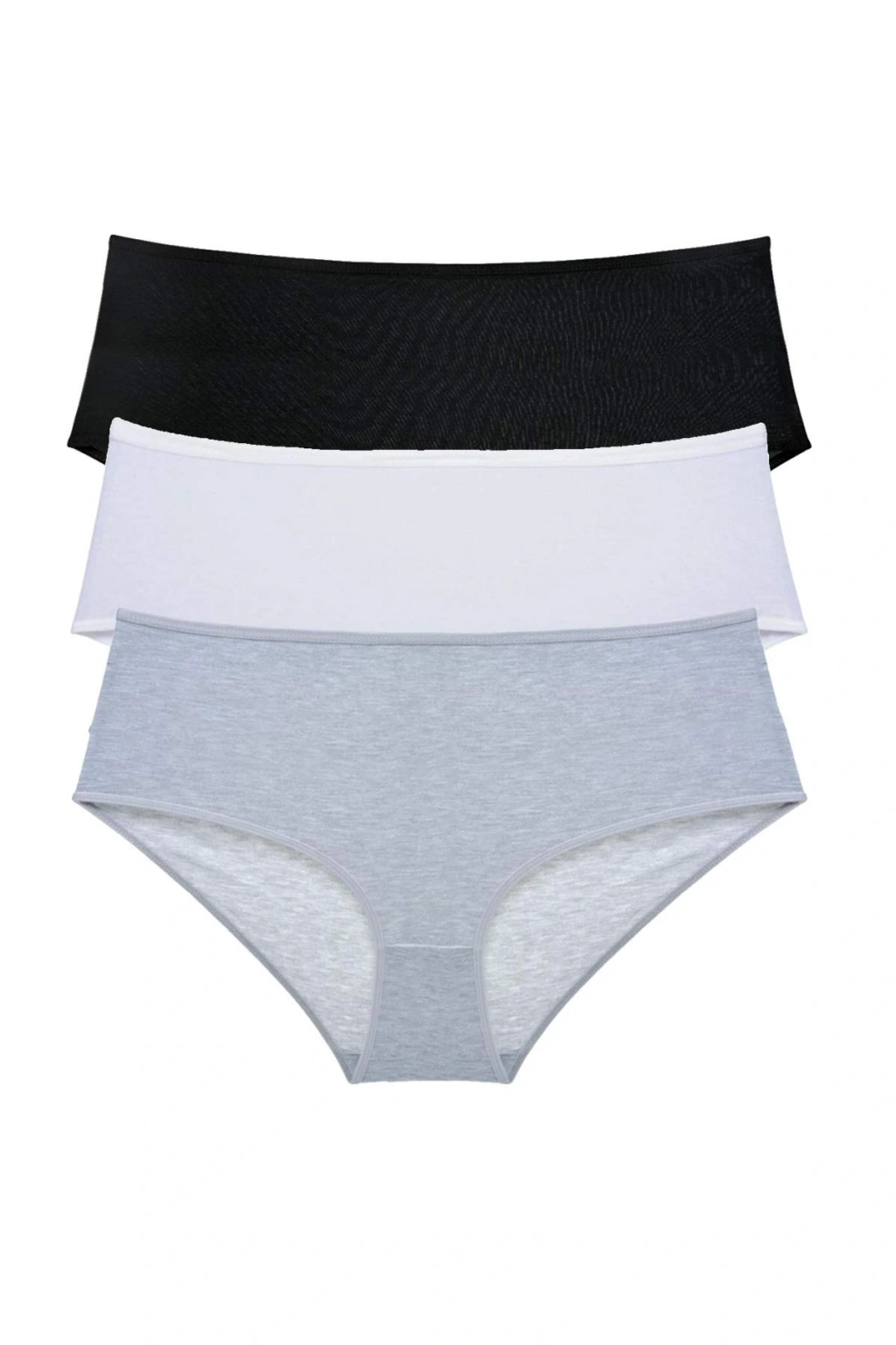 3 Adet Kadın Yüksek Bel Bato Külot Siyah Beyaz Gri
