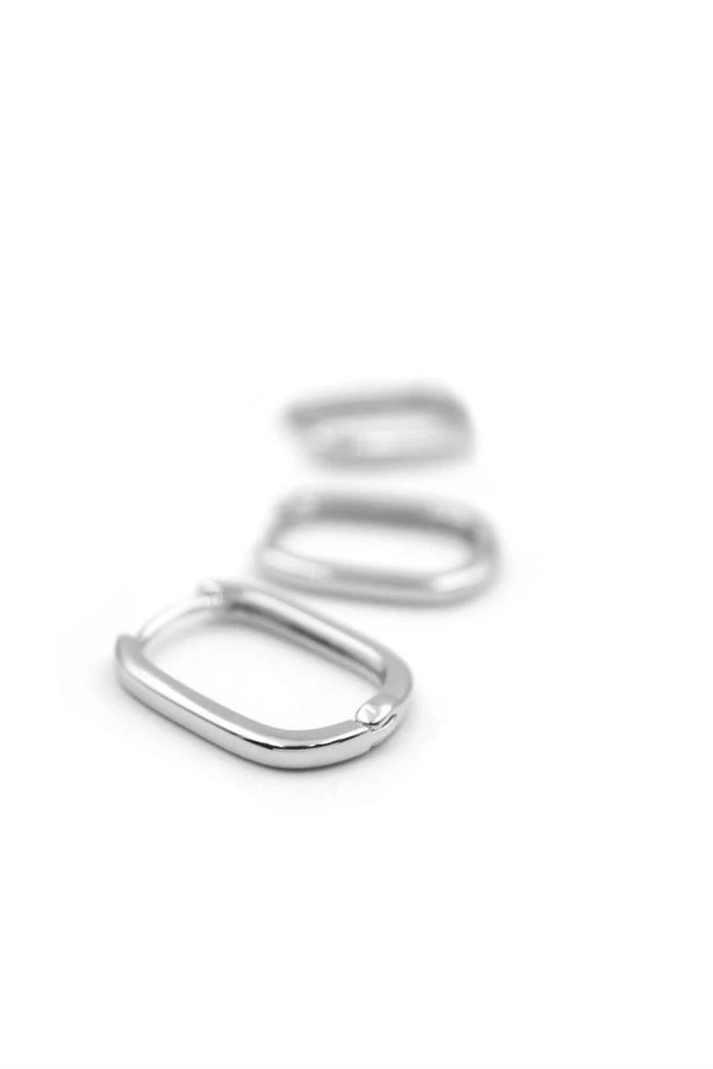 3'lü Taşsız Oval Halka Küpe - Gümüş
