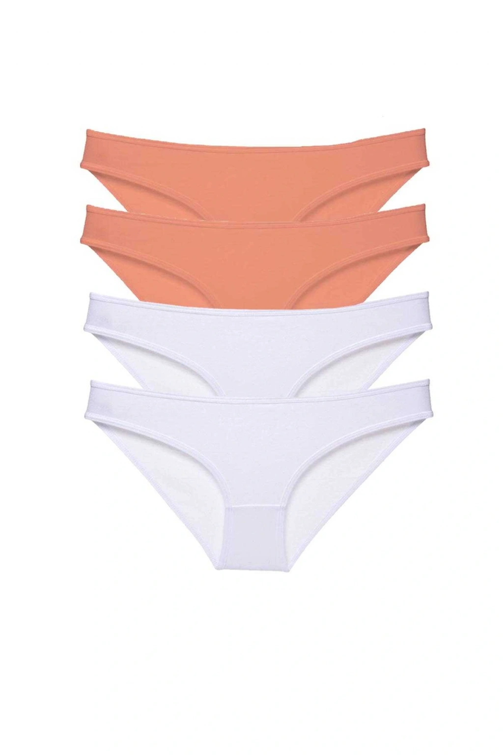 4 adet Eko Set Likralı Kadın Slip Külot Pudra Beyaz