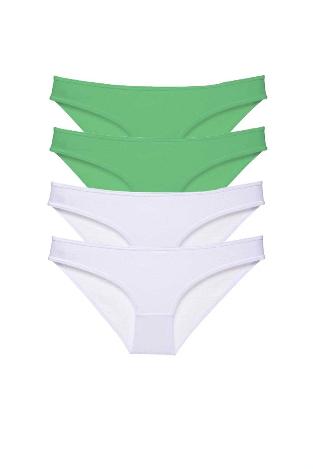 4 adet Eko Set Likralı Kadın Slip Külot Yeşil Beyaz