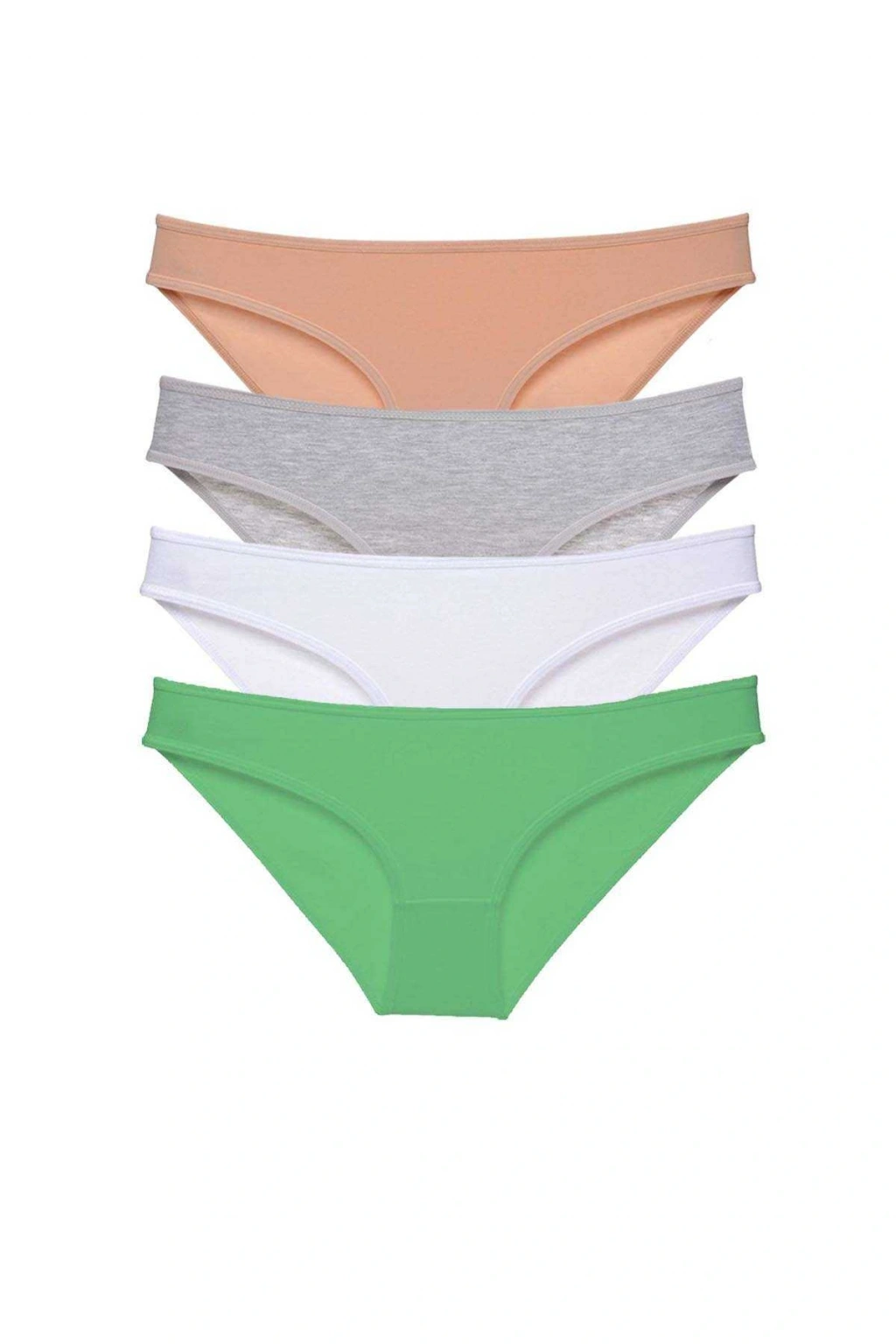 4 adet Süper Eko Set Likralı Kadın Slip Külot Ten Gri Beyaz Yeşil