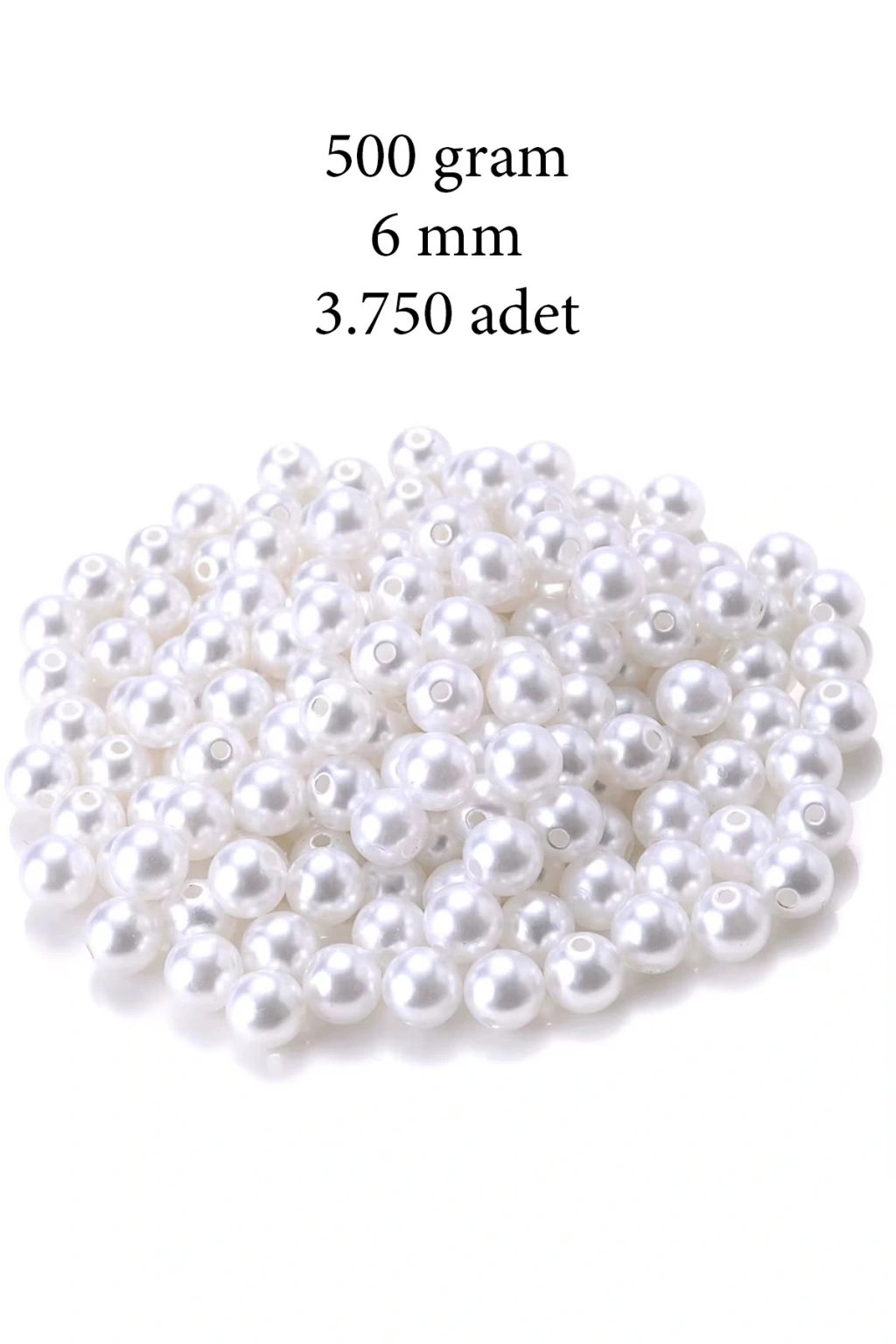 | 500 gram 6mm Beyaz Renk Plastik İnci Boncuk Çanta ve Takı Yapım Boncuğu (~3.750 adet) |