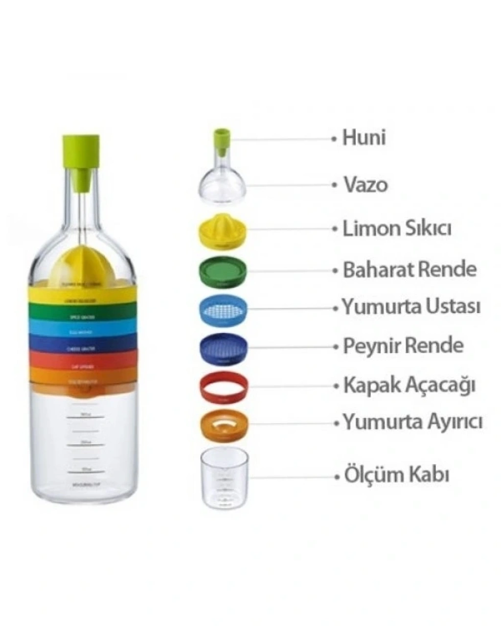 Sekiz Fonksiyonlu Şişe Şeklinde Mutfak Seti Paket İçeriği