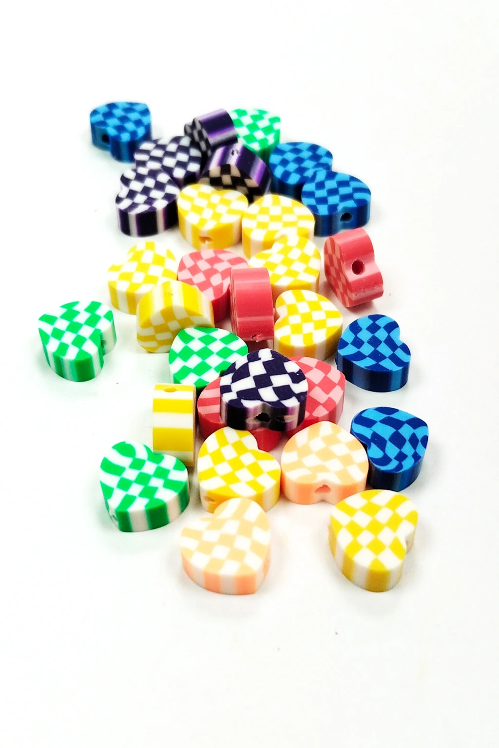 90 Adet 10 mm Polimer Kil Fimo Boncuk Takı Bileklik + 5 Metre Misina Hediye - Smile - Kalp - Nazar