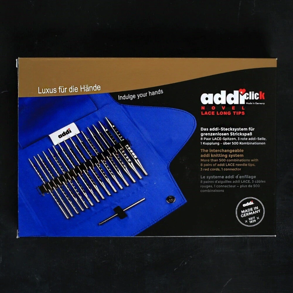 Alman üretici ADDI, Yeni ADDI Click NOVEL Lace long koleksiyonunu örgüseverler için üretti. AddiNOVEL, AddiClick değiştirilebilir sistemine ek olarak, yuvarlatılmış kenarları ve yapılandırılmış yüzeyi olan ergonomik bir kare tasarıma sahiptir. Bu set, tüm örgüleriniz için mükemmel bir seçimdir.