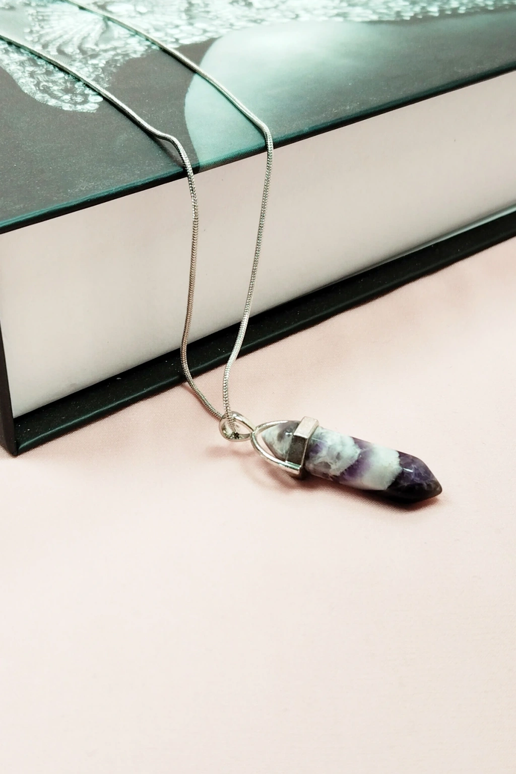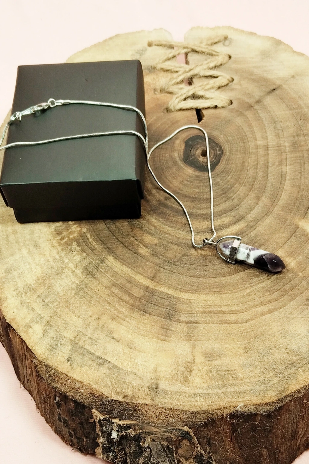 | Ametist Doğal Taşı Zincirli El Yapımı Tasarımlı Kolye Uç: 3,5 cm Zincir: 20 cm Kutulu |