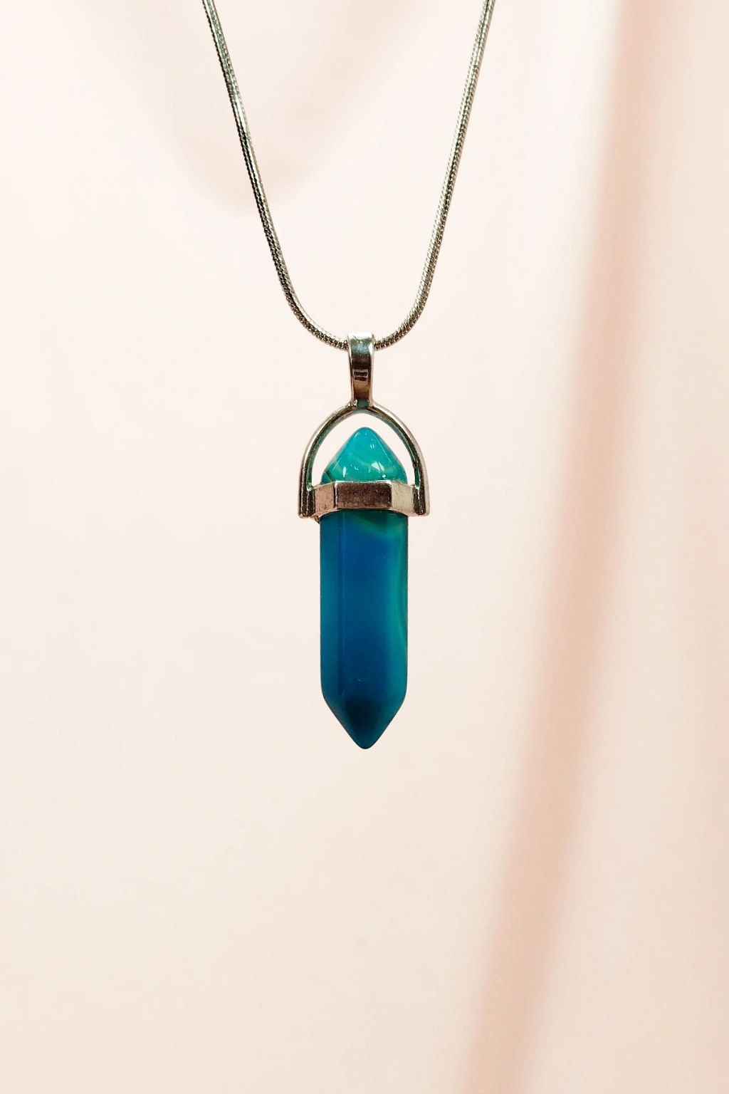| Aquamarin Doğal Taşı Zincirli El Yapımı Tasarımlı Kolye Uç: 3,5 cm Zincir: 20 cm Kutulu |