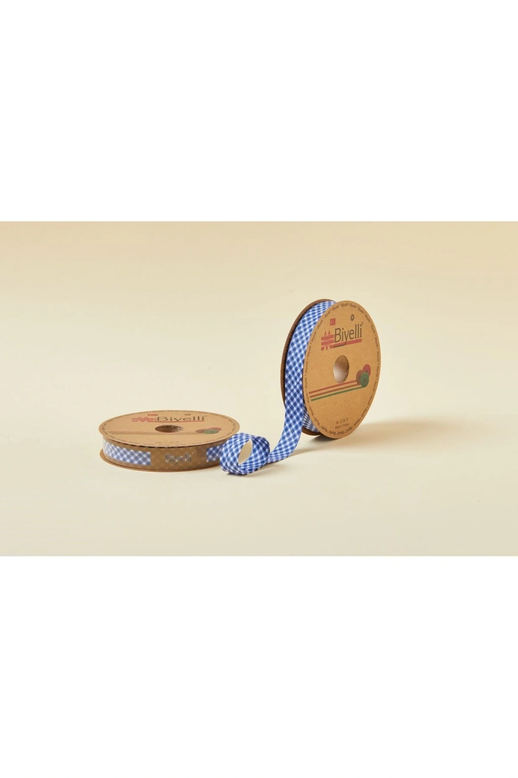 Biye Ekoseli Katlı E08 Lacivert 2 cm 25 Metre %65 Koton %35 Polyester