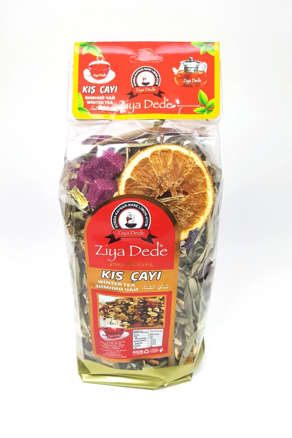 | Ziya Dede Bomba Özel Kış Çayı 200 Gr 12 li Karışım İçeriği : Hibiskus, Portakal Kabuğu, Nar Çiçeği, Mersin Yaprağı, Ada Çayı, Htmi Çiçeği, Zeytin Yaprağı, Nar Kabuğu, Okaliptus, Kekik, Papatya, Atom Çayı. Kullanım Şekli: Karışımı oluşturan bütün bitkilerden bir avuç kadar alınıp demlenir. 5 dakika bekletildikten sonra tüketilir. |