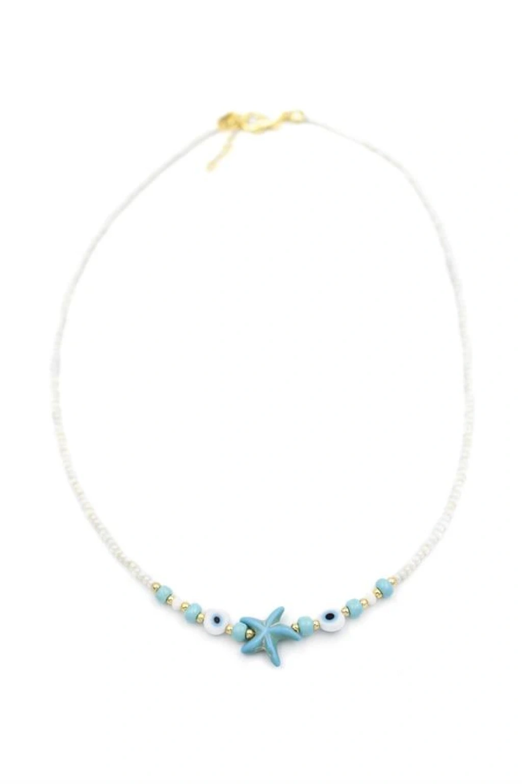 Boncuk Deniz Yıldzı Kolye - Beyaz
