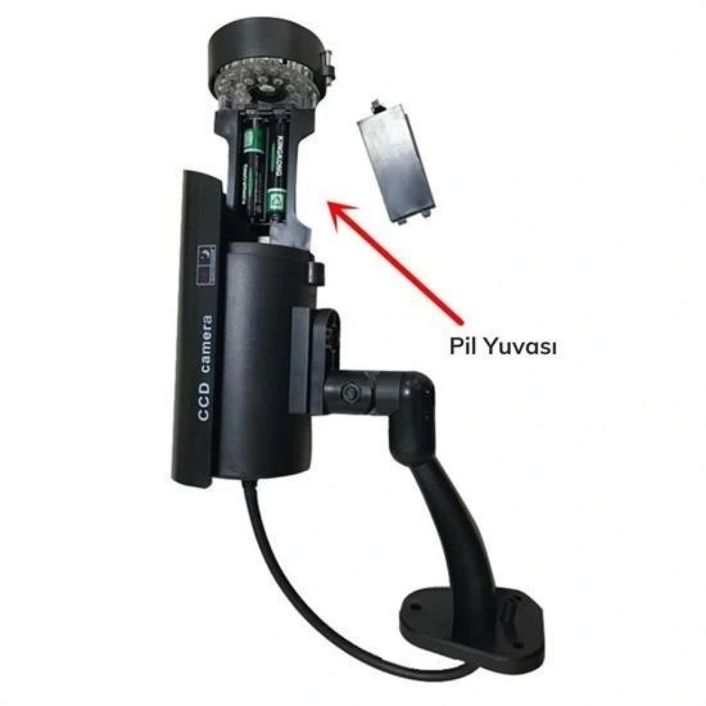 Üzerindeki çoklu sahte kızıl ötesi led ışık ışığı her 5 saniyede bir yanıp söner ve geceleri görebileceği görünümü verir Sahte video kablosu kameranın bir kamera kayıt cihazına bağlı olduğu görüntüsü verir