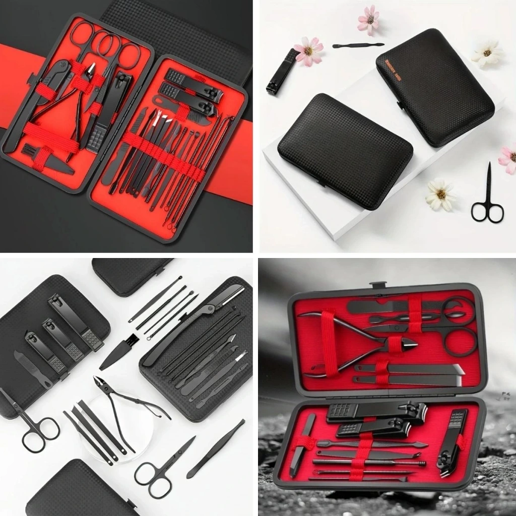 24 Parça Çok Amaçlı İçerik: Tırnak makası, törpü, cımbız, makas, kulak temizleyici, sivilce çıkarıcı, tırnak eti aparatı ve daha fazlası.