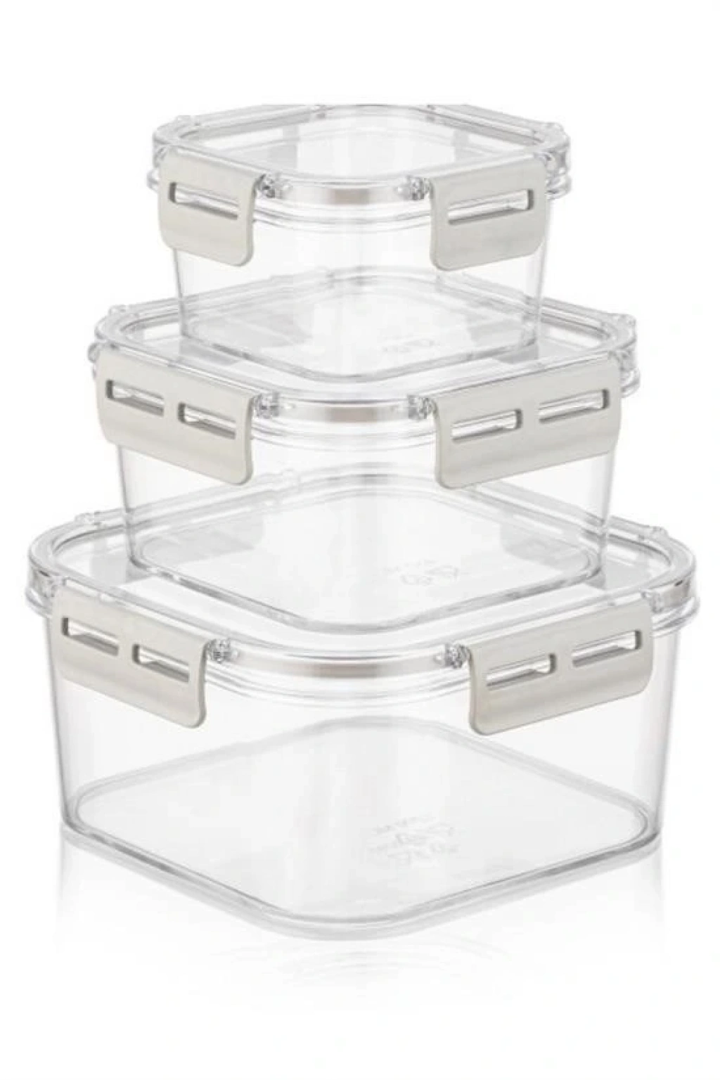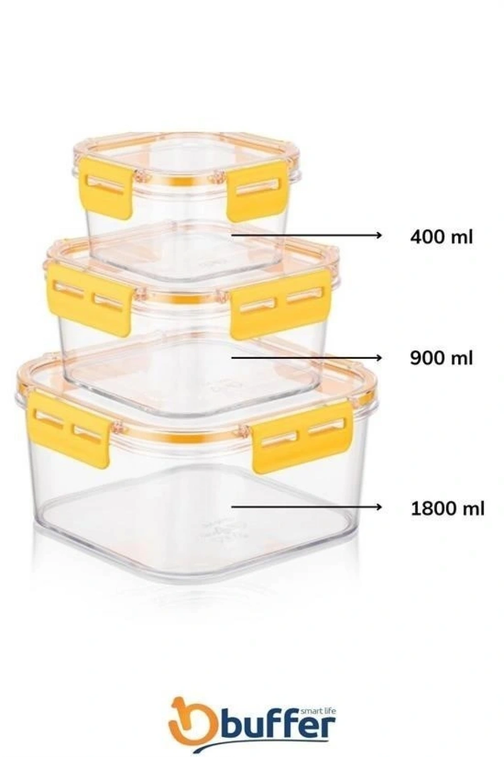 BUFFER® 3'lü Pratik Silikon Contalı Sızdırmaz Kapaklı Sağlam İstiflenebilir Saklama Kapları