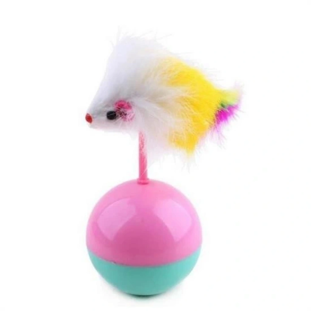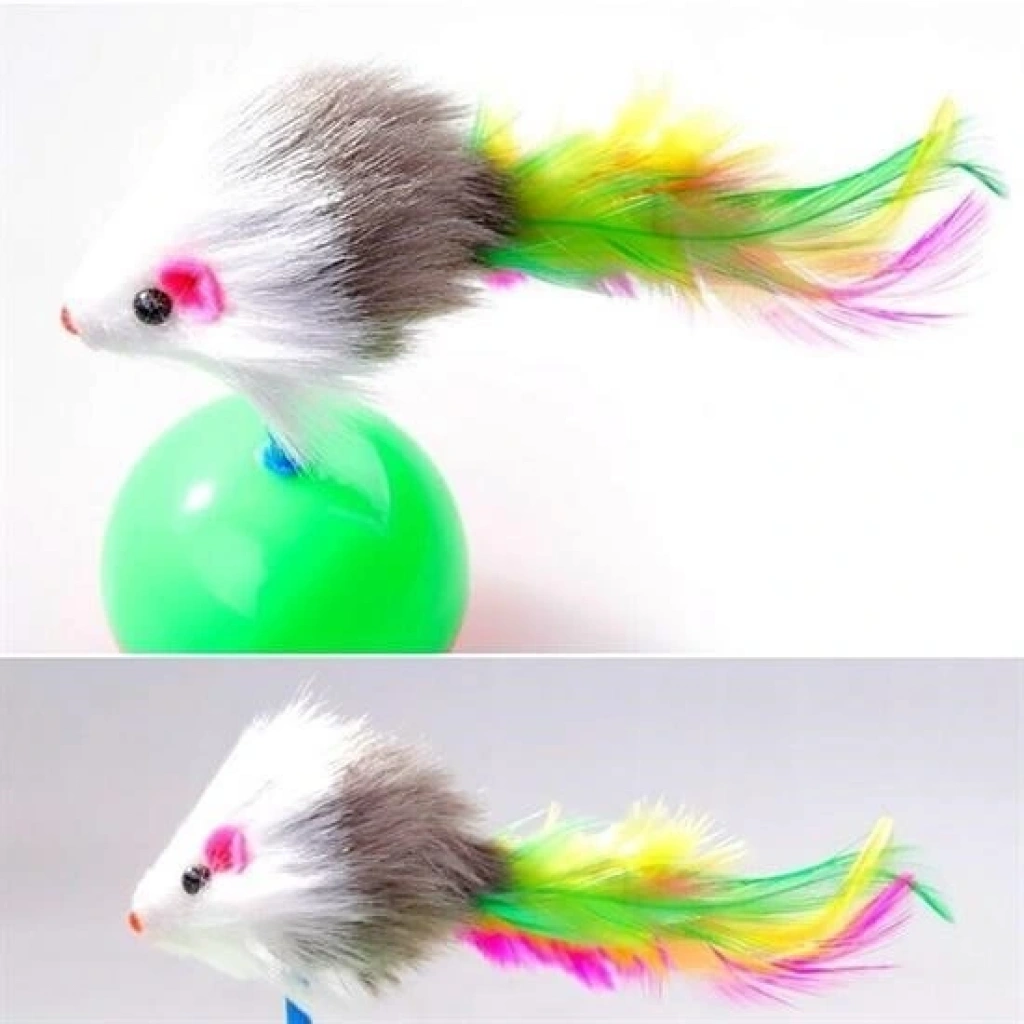 Hacı yatmaz modeli oyuncakta peluş renkli tüyler ve fare şekli kullanılarak kediler için ekstra bir ilgi çekici ürün haline gelmiştir