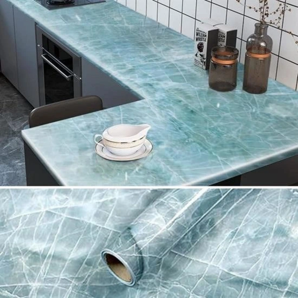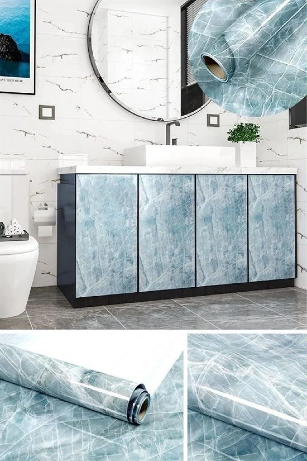 Buffer Mermer Desenli Masa Tezgah Mutfak Duvar Kağıdı Su Geçirmez Yapışkanlı Folyo Sticker Mavi 5x0,6m