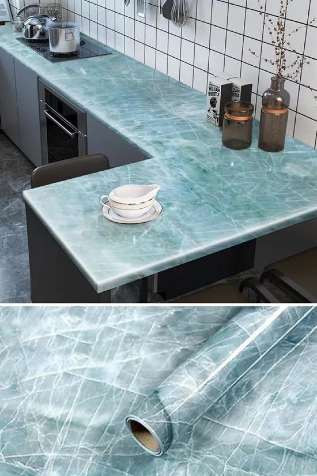 Mermer desenli yapışkanlı folyo ürünüyle birlikte evinizde şık ve modern bir görünüm sağlayabilirsiniz