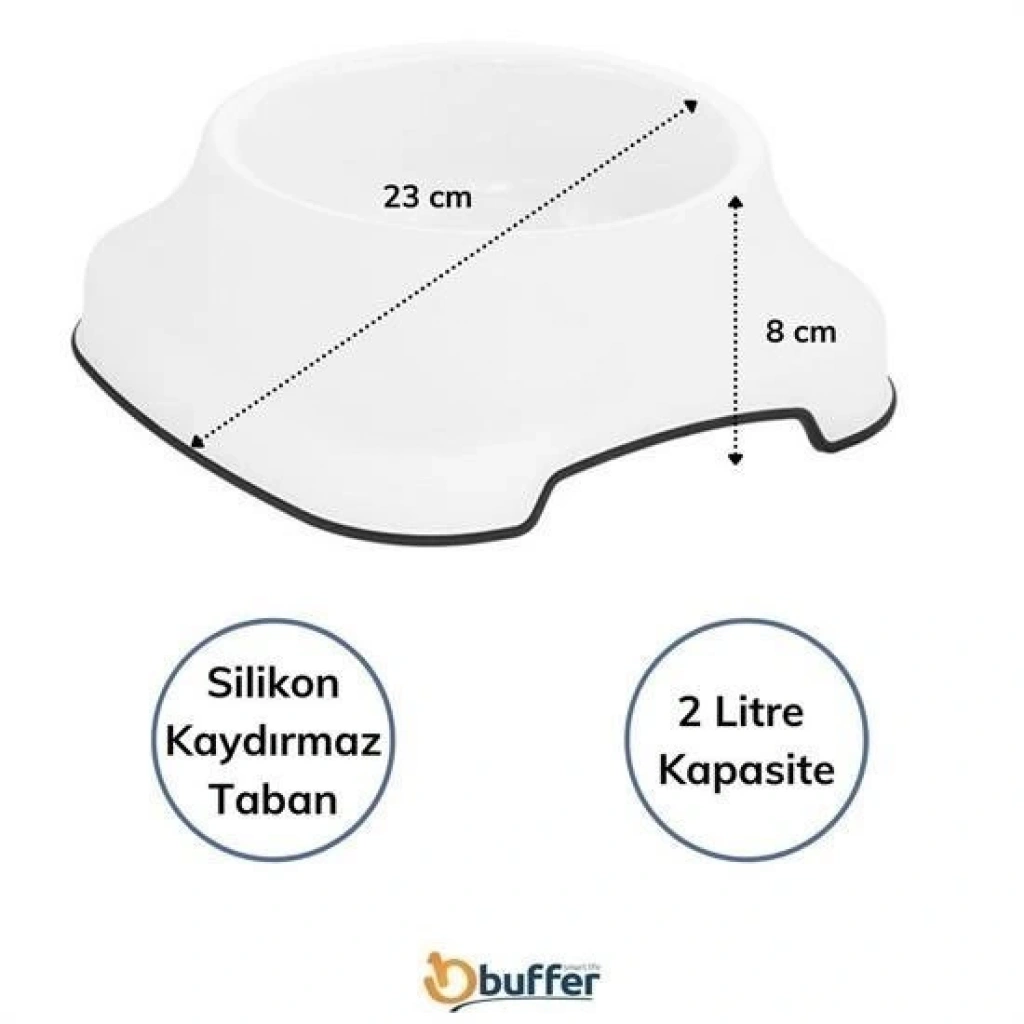 BUFFER® Silikon Kaydırmaz Taban Plastik Kedi ve Köpek Mama ve Su Kabı 2 L