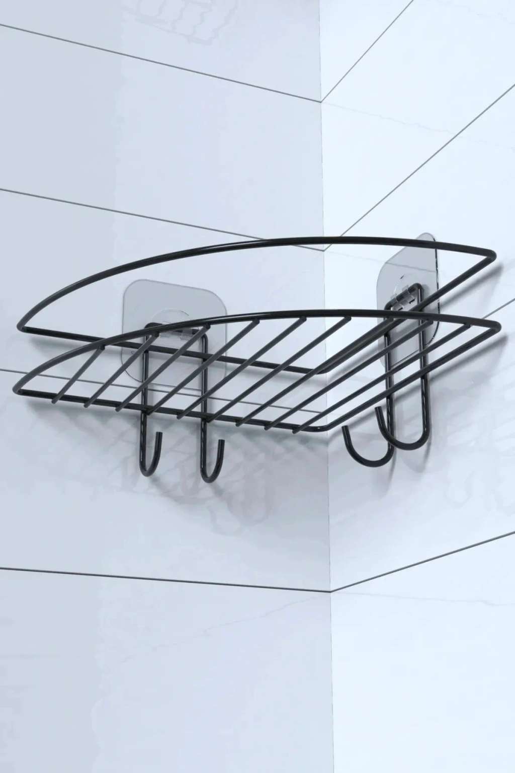 BUFFER® Yapışkanlı Banyo Köşeliği Kancalı Köşe Rafı Duş Şampuanlık Duvar Düzenleyici Organizer Raf