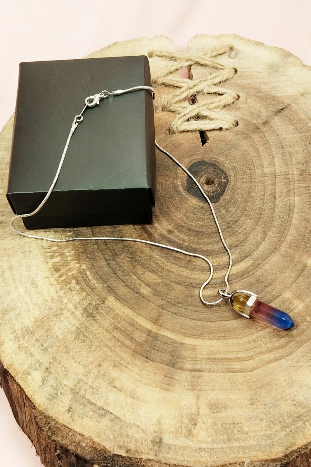 | Çakra Doğal Taşı Zincirli El Yapımı Tasarımlı Kolye Uç: 3,5 cm Zincir: 20 cm Kutulu |