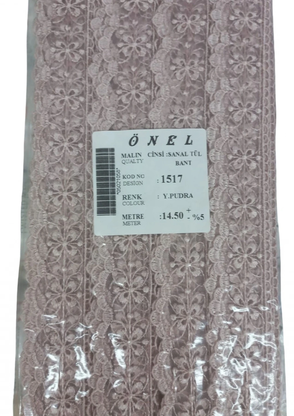 Dantel Polyester Sanal Tül Bant Y.Pudra 14,50 Metre En 3 cm ON-1517-PU