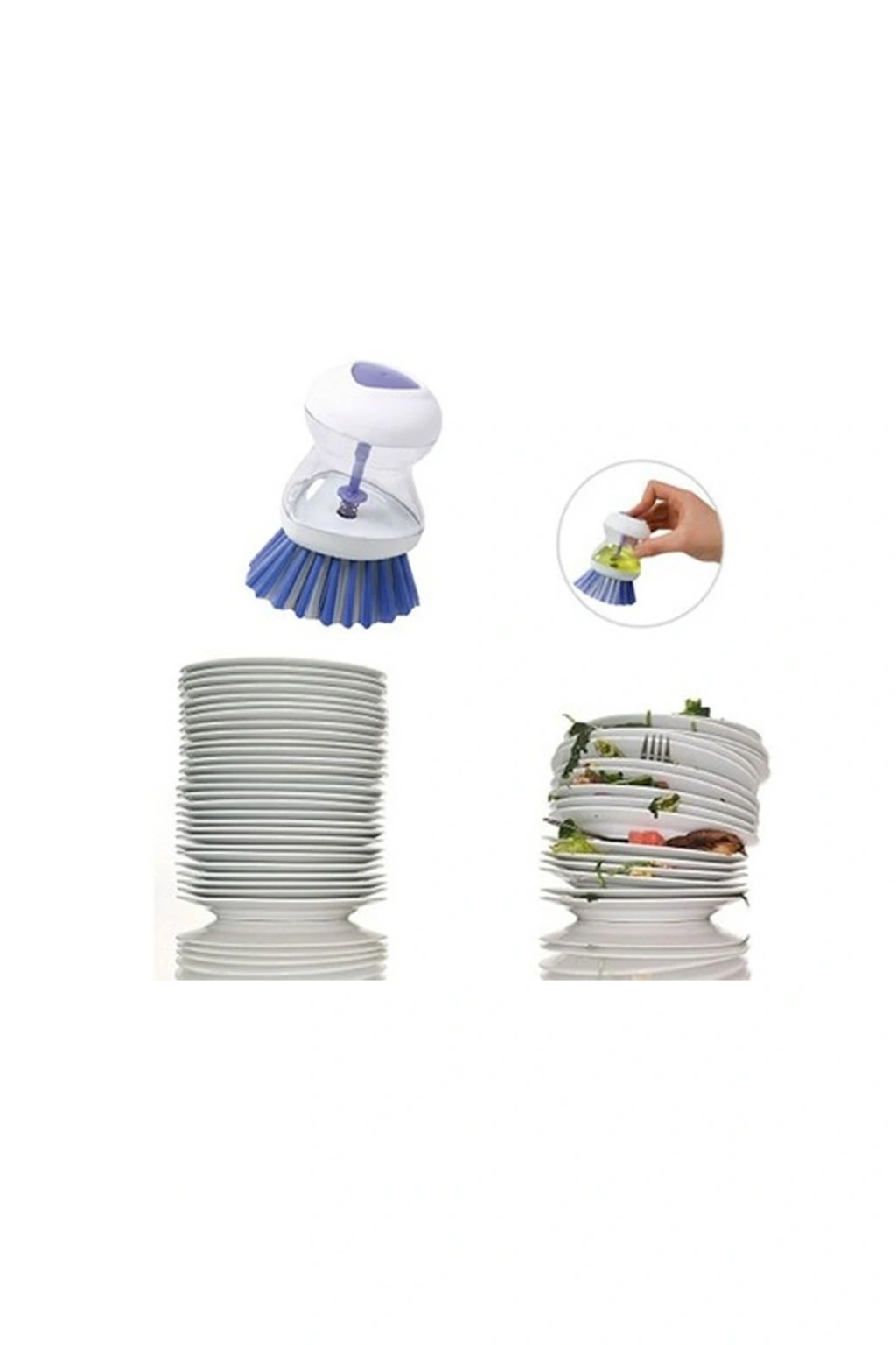 | Sıvı deterjan haznesine bulaşık deterjanı koyun, üstteki düğmeye her bastığınızda bir miktar deterjan fırçanın kıllarının dibinden fırçaya akar. Özellikleri: Zor ve yanmış yağları söker. Tencere ve tavaları çizmez. Pratik ve kullanımı kolaydır. |