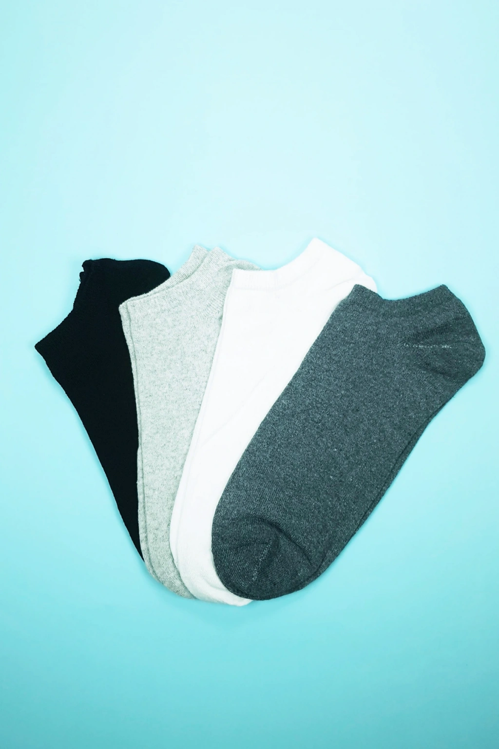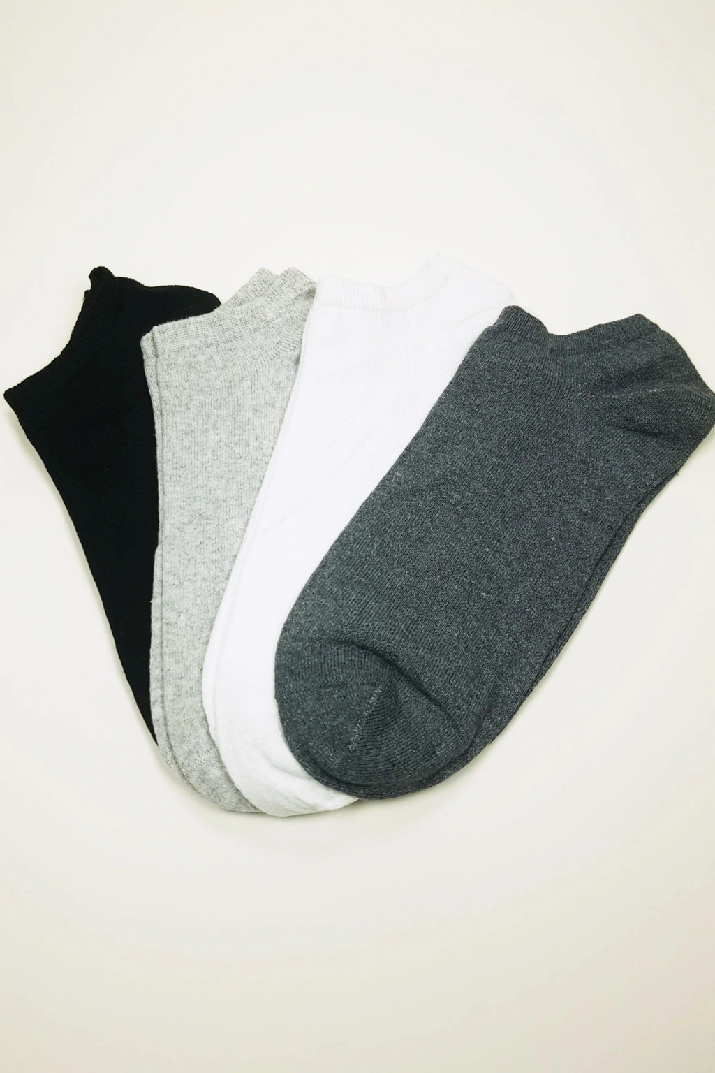 Paket içeriğinde 1 adet siyah , 1 adet beyaz , 1 adet koyu gri ve 1 adet açık gri olmak üzere 4 çift çorap vardır