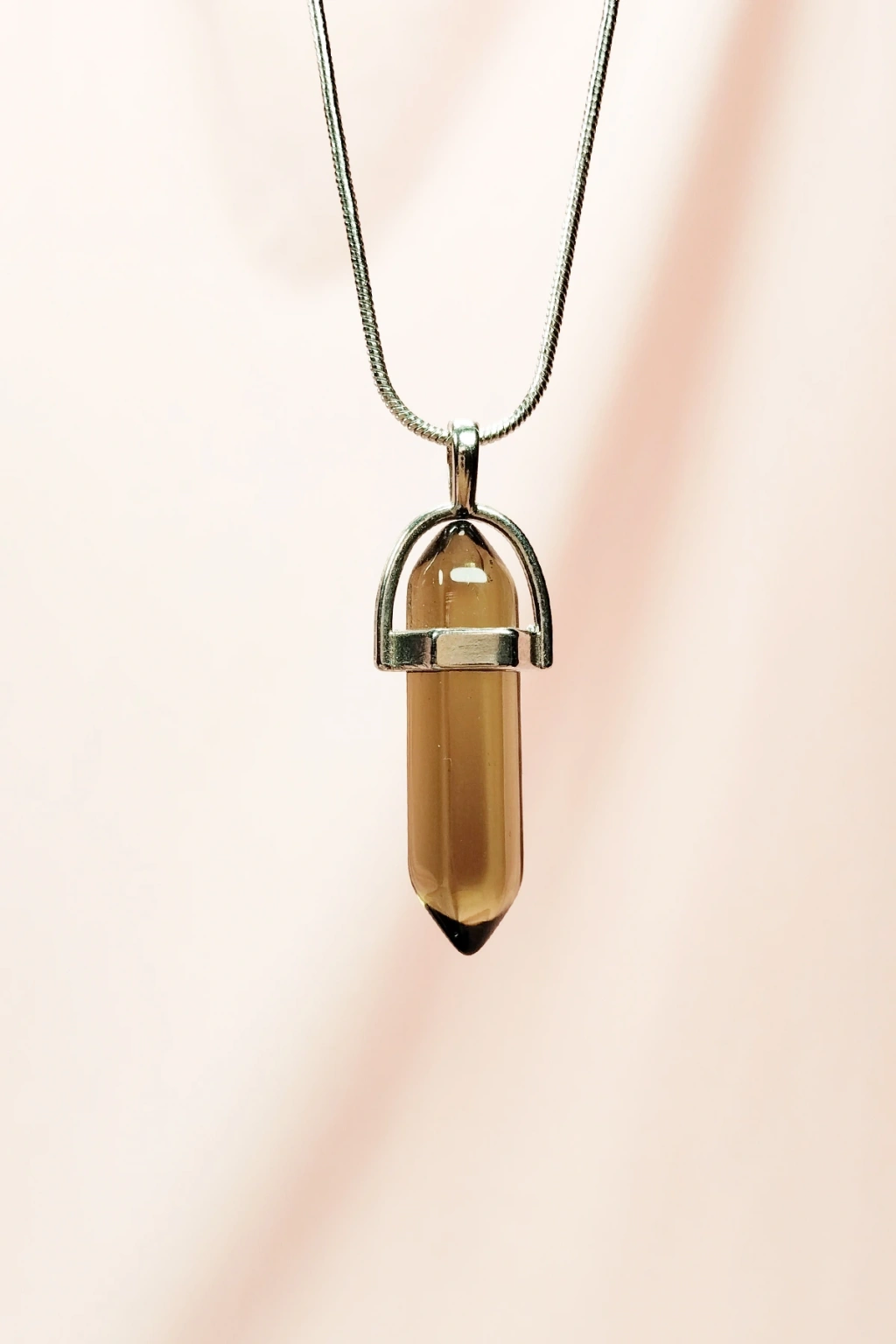 | Dumanlı Kuvars Doğal Taşı Zincirli El Yapımı Tasarımlı Kolye Uç: 3,5 cm Zincir: 20 cm Kutulu |