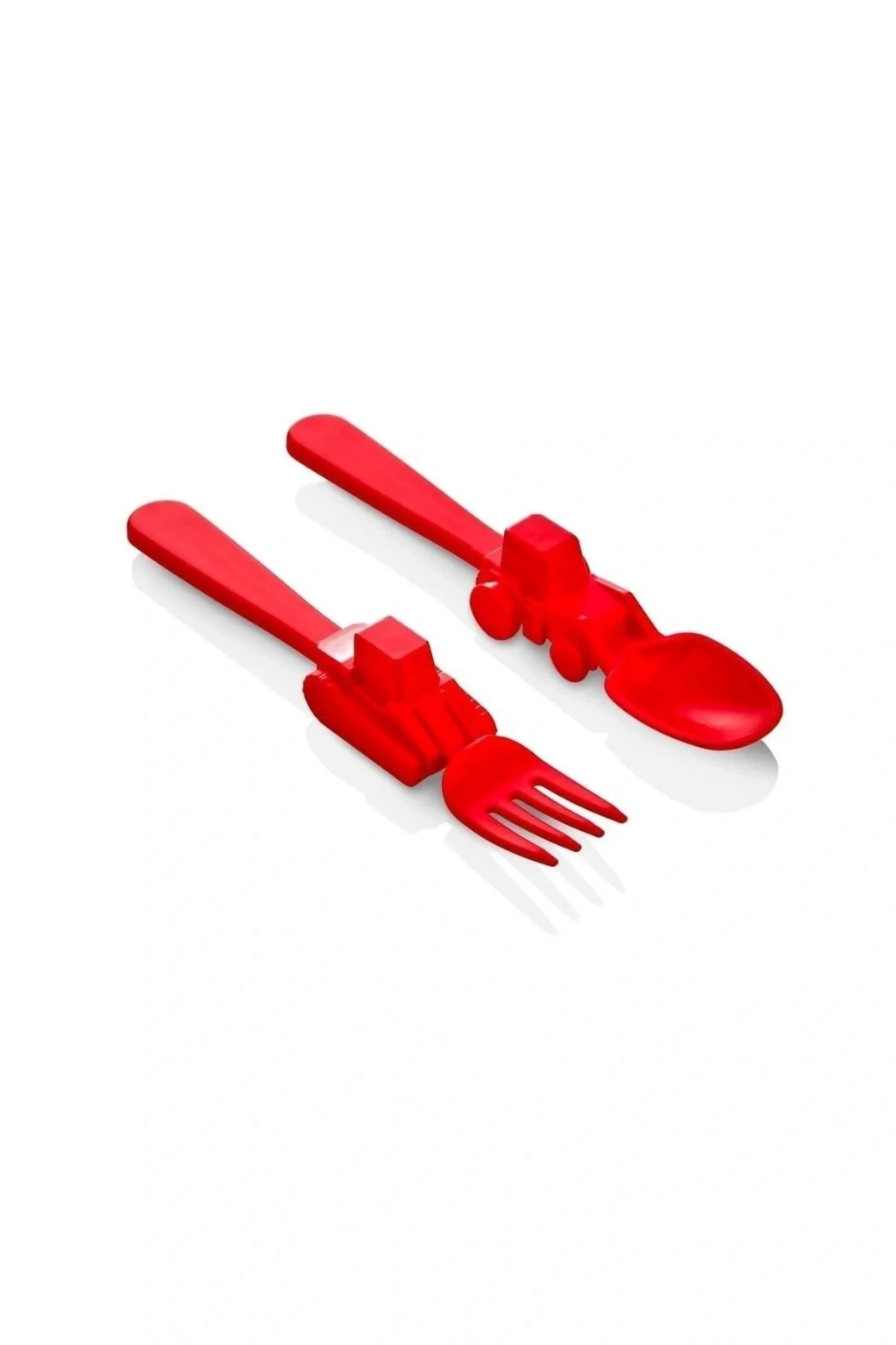 1 Takım Figürlü Mama Çatal Kaşık Seti - Kırmızı