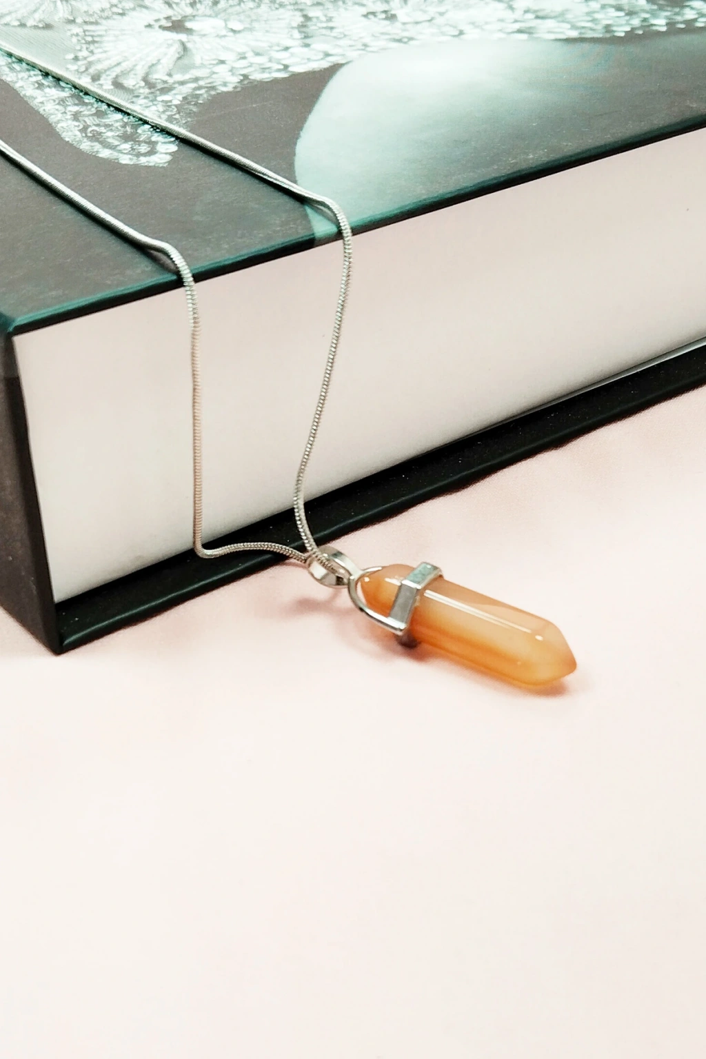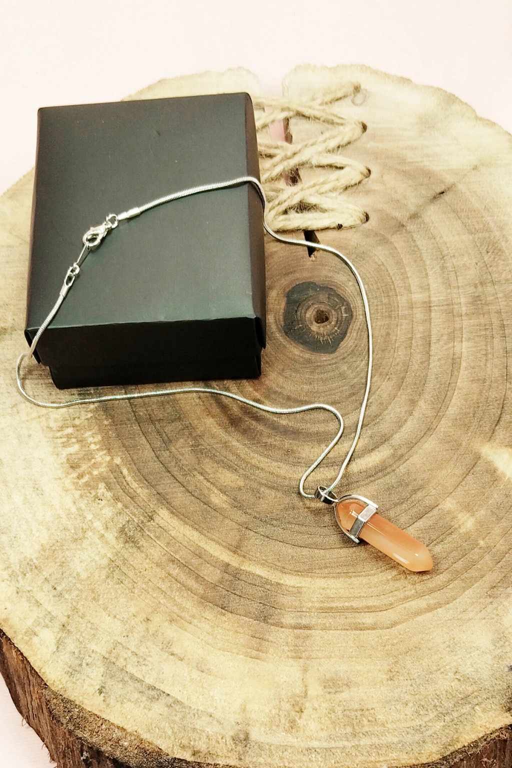 | Güneş Taşı Doğal Taşı Zincirli El Yapımı Tasarımlı Kolye Uç: 3,5 cm Zincir: 20 cm Kutulu |