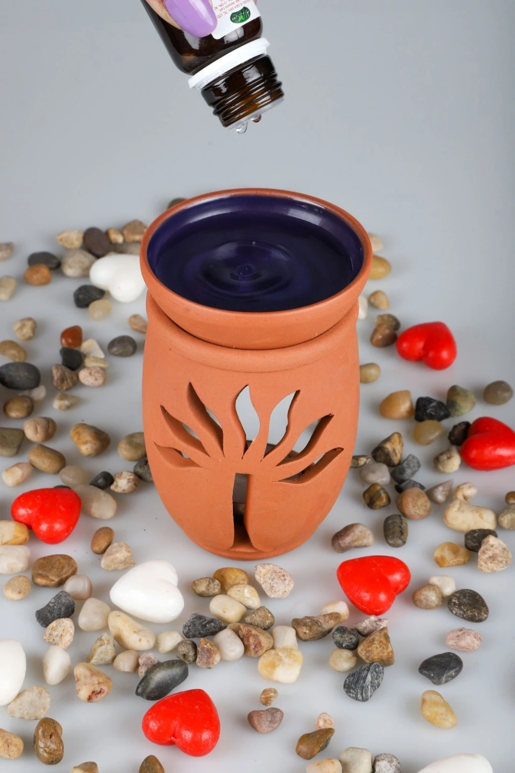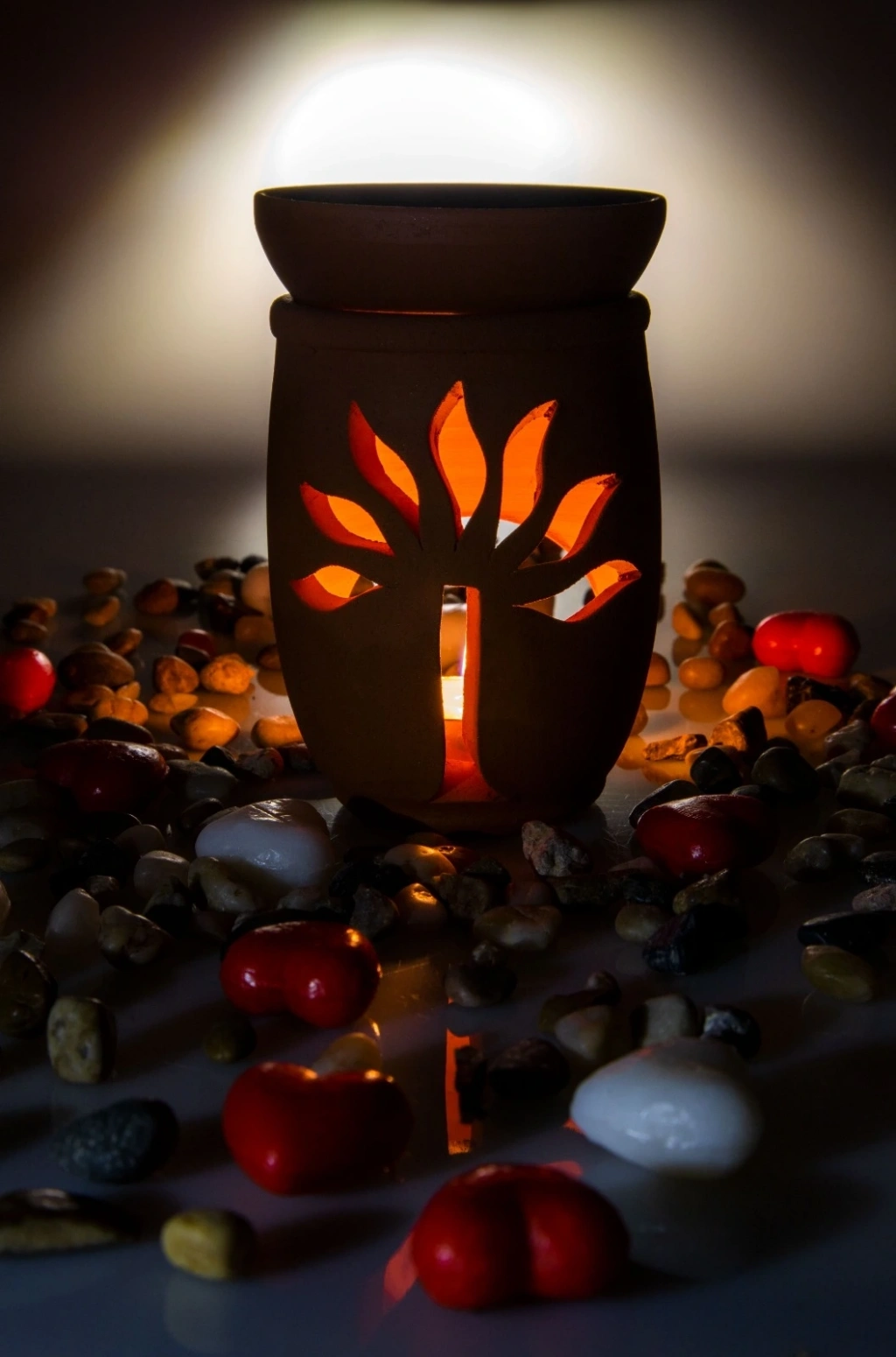 Aromaterapi yağlarıyla kullanılır, altına mum konur, üstüne isteğinize göre aromaterapi yağları,adaçayı veya tütsü koyabilirsiniz üst kısım kasesidir .
