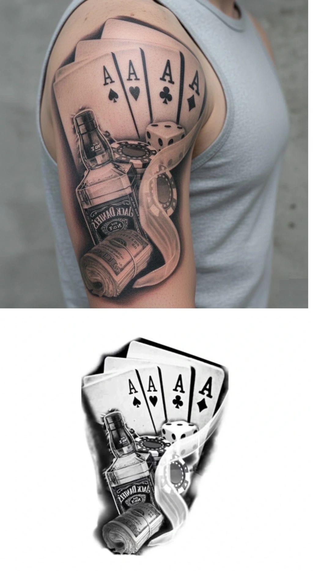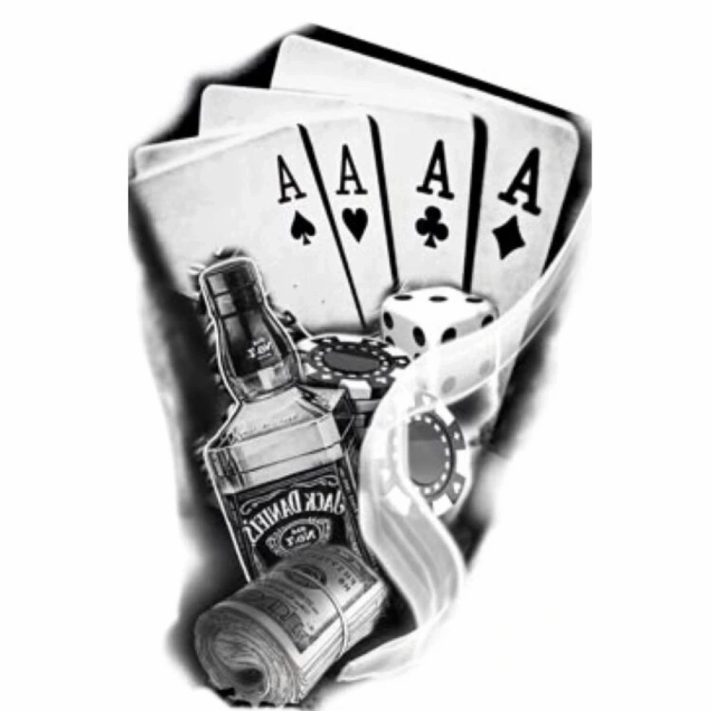 1 Kartela İskambil Dolar Zar Geçici Dövme Şablonu Büyük Boy