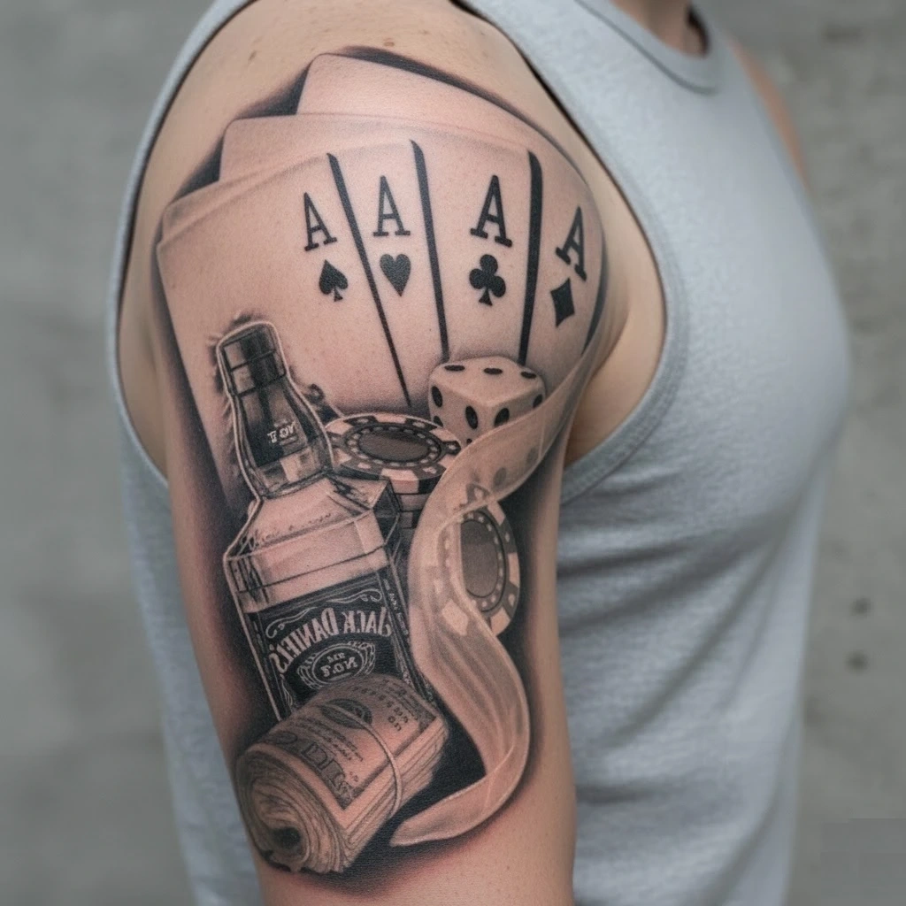 İskambil Dolar Zar Geçici Dövme Şablonu Büyük Boy