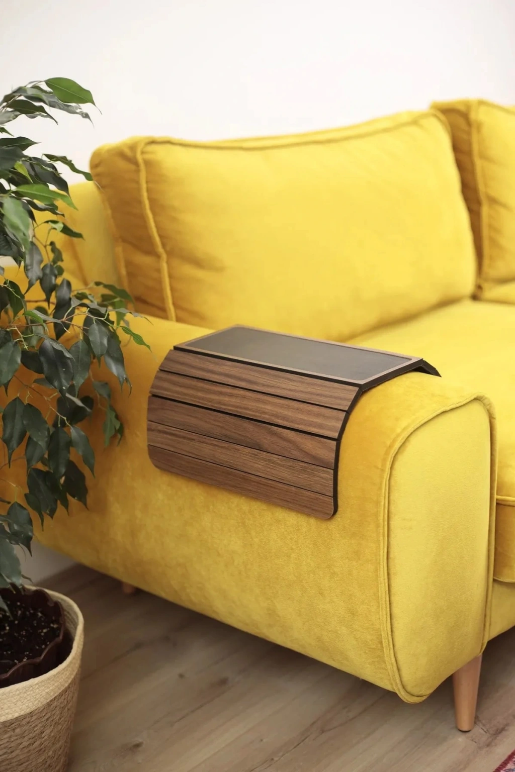 Kahverengi Koltuk Kenarı Ahşap Kaymaz Tepsi