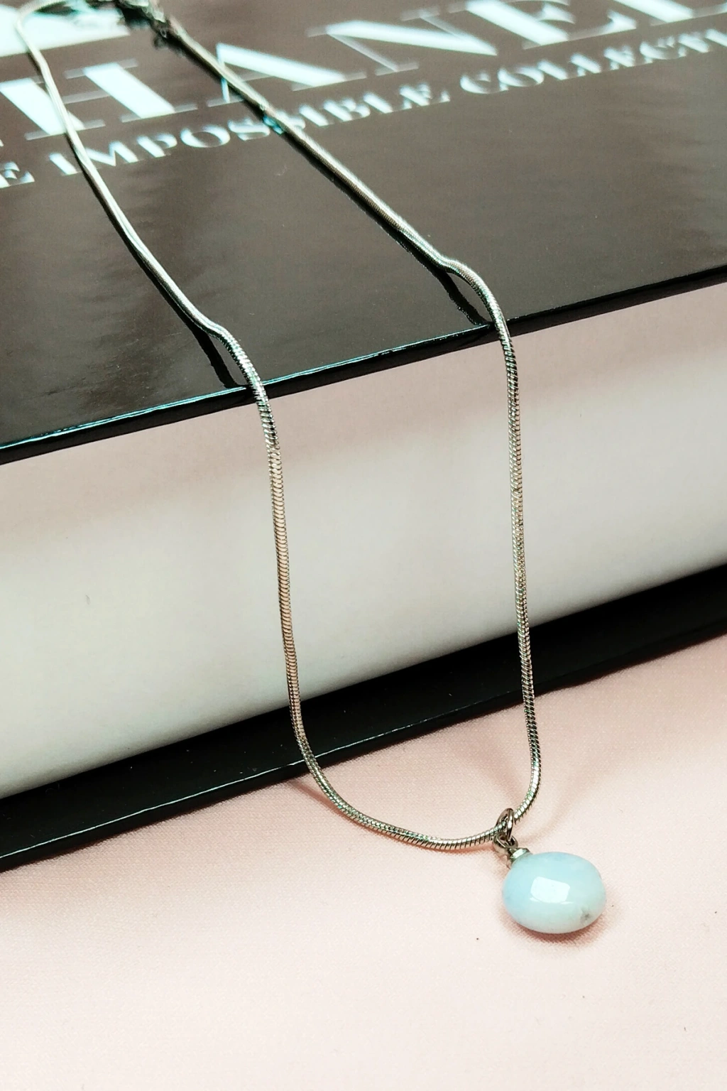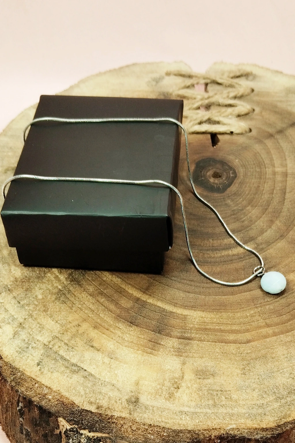 Kalsedon Doğal Taşı Zincirli El Yapımı Kolye Uç: 1,5 cm Zincir: 20 cm Kutulu
