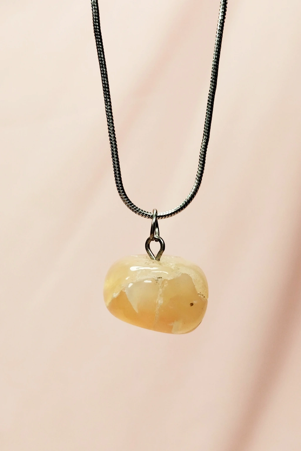 | Kalsit Doğal Taşı Zincirli El Yapımı Kolye Uç: 1,5 cm Zincir: 20 cm Kutulu |