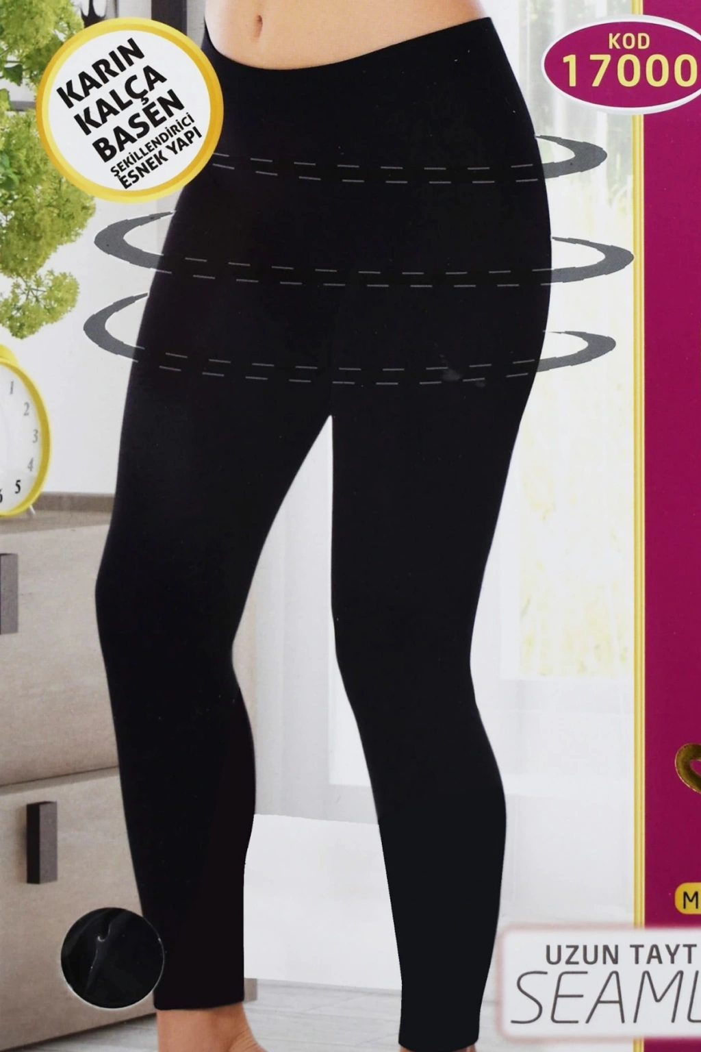 | Korseli Dikişsiz İz Yapmaz Bayan Uzun Tayt 17000 Siyah |