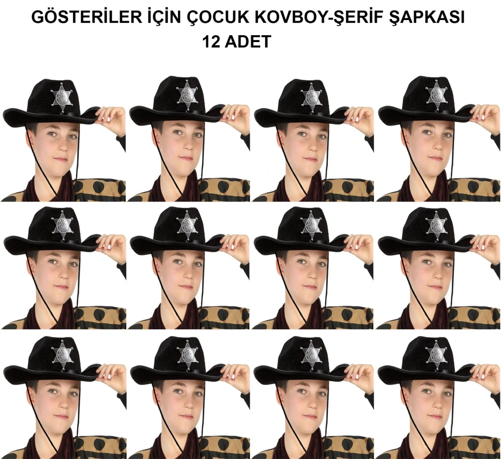 Çocuk Kovboy Şerif Şapkası 12’li Set – Kostüm ve Gösteri Aksesuarı