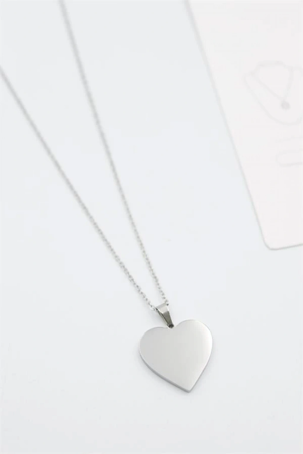 Küçük Kalp Plaka Kolye - Gümüş