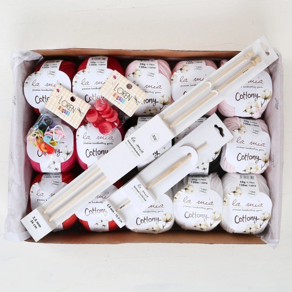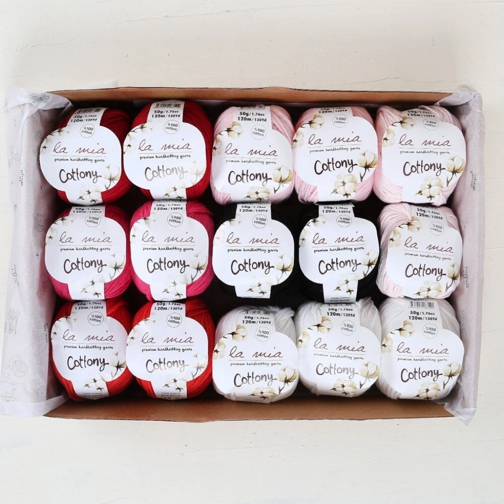 Sevgilinize, eşinize, annenize ya da kendinize alabileceğiniz La Mia Cottony Love Seti, sizler için özenle seçildi ve hazırlandı. La Mia Cottony %100 en kaliteli ve en yumuşak pamuk içeriği ile özellikle tüm bebek örgüsü modellerinde güvenle kullanabileceğiniz, kalınlığından dolayı hem şiş hem de tığ ile keyifle örebileceğiniz bir ipliktir.