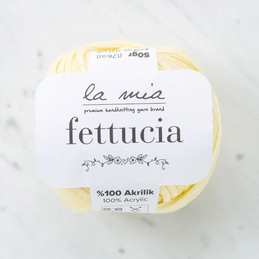 La Mia Fettucia El Örgü İpi La Mia Fettucia, yumuşak yapıda ve zincir şeklinde bir ipliktir. Fettucia'nın ana amacı ev dekoru, bardak altlığı, yastık, çanta, şapka vb. aksesuarlar içindir. Ancak yumuşaklığı ve parlaklığıyla Fettucia İpi ni yazlık giysiler için de kullanabilirsiniz. La Mia Fettucia el örgü ipleri özellikle tüm sezon tığ işi projelerinizde kolaylık sağlar.İlmek Bilgisi: 10x10 cm = 24 ilmek x 38 sıraKullanım Alanı: Yastık, bardak altlığı, çanta, şapka, dekorasyon, yazlık giysiler de kullanabilirsiniz.