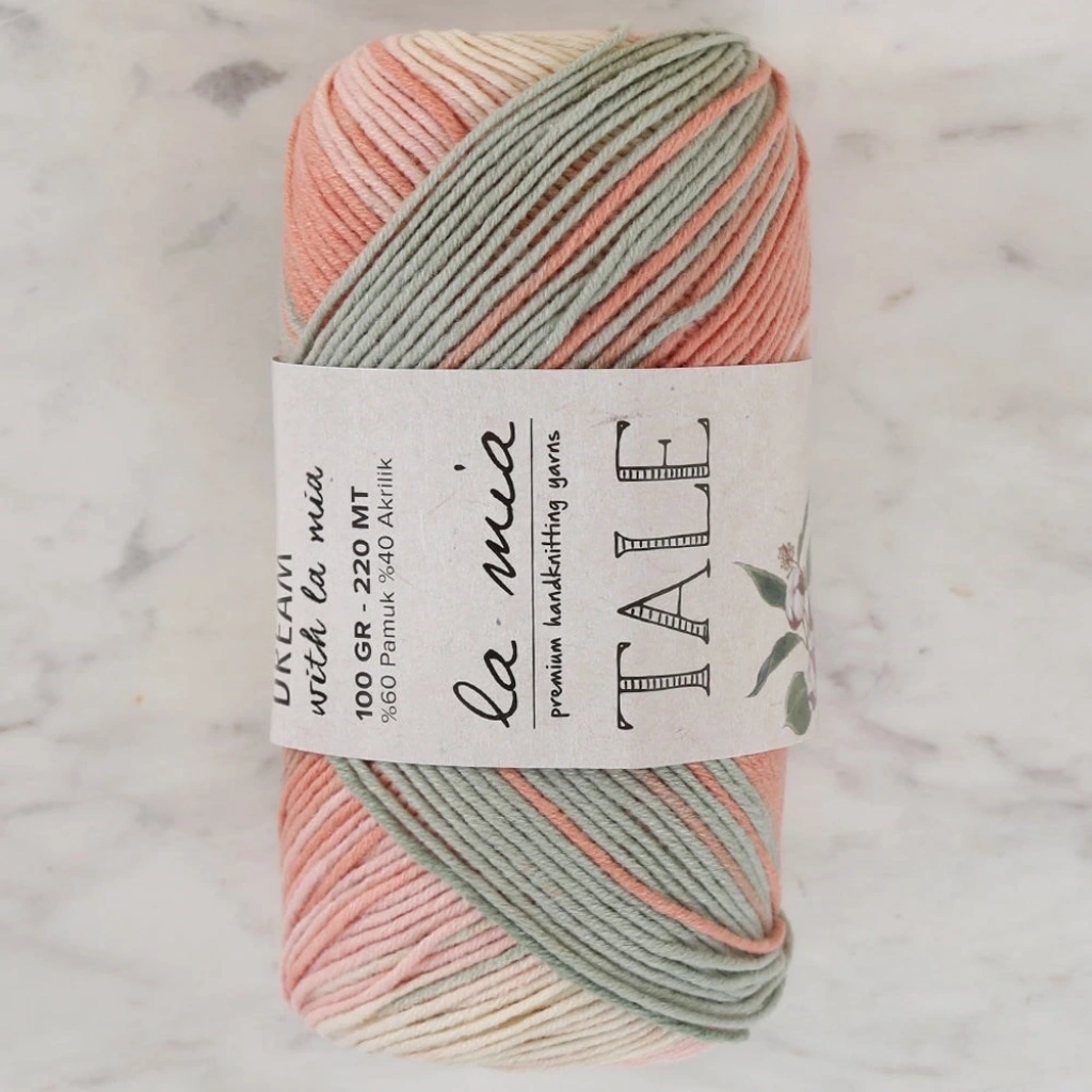 La Mia Markası'na ait yepyeni ürün TALE ile hayalini yarat.Geçişli renk tonlarının hakim olduğu bu seri ile havanız değişecek. Yumuşak ve kolay tüylenmeyen yapısı, güzel renk tonları ile örgüleriniz artık daha gösterişli. Tüm örgü modellerinizde güvenle tercih edebilirsiniz.