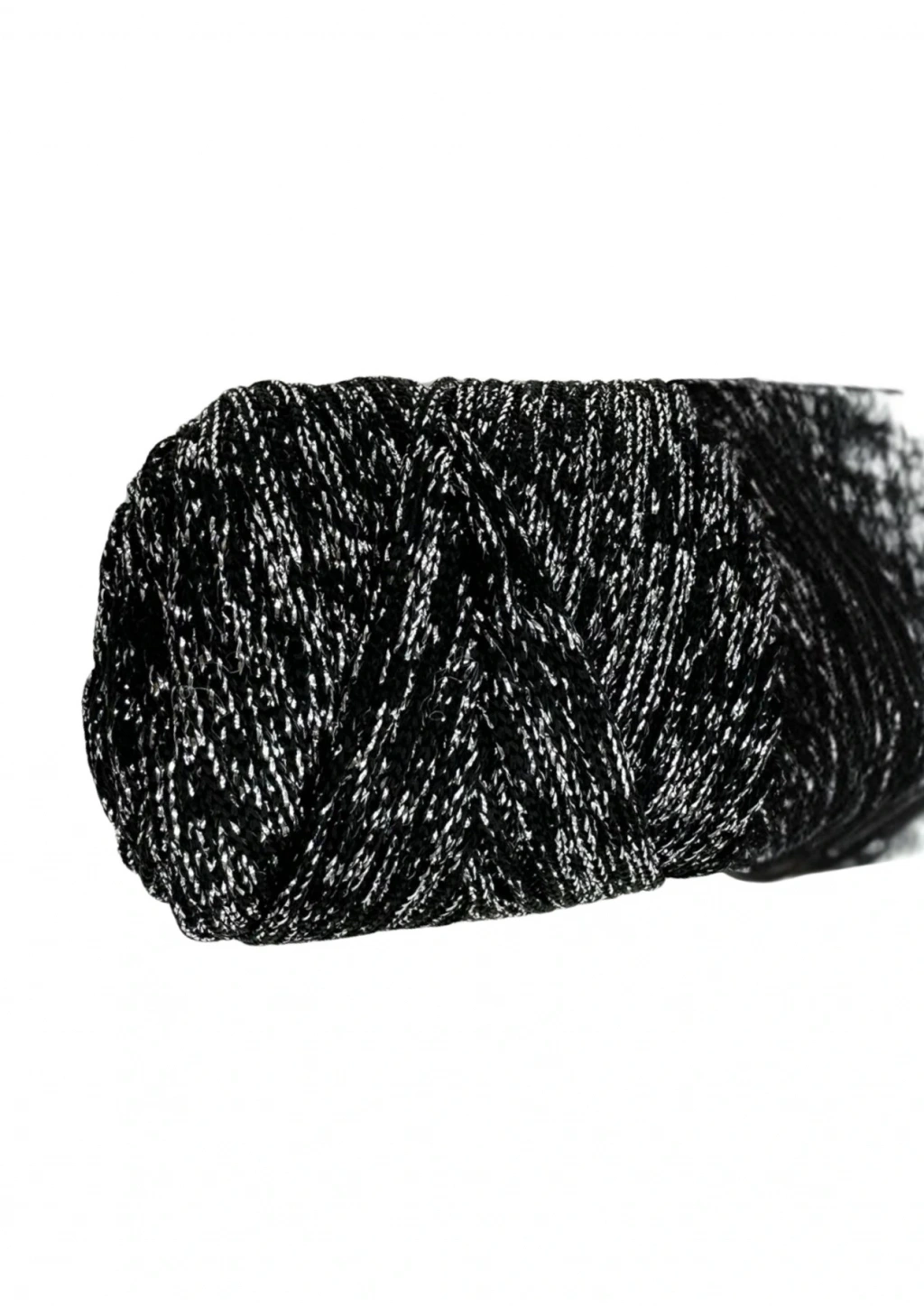 Makrome İpi 3mm Polyester Siyah Gümüş Simli