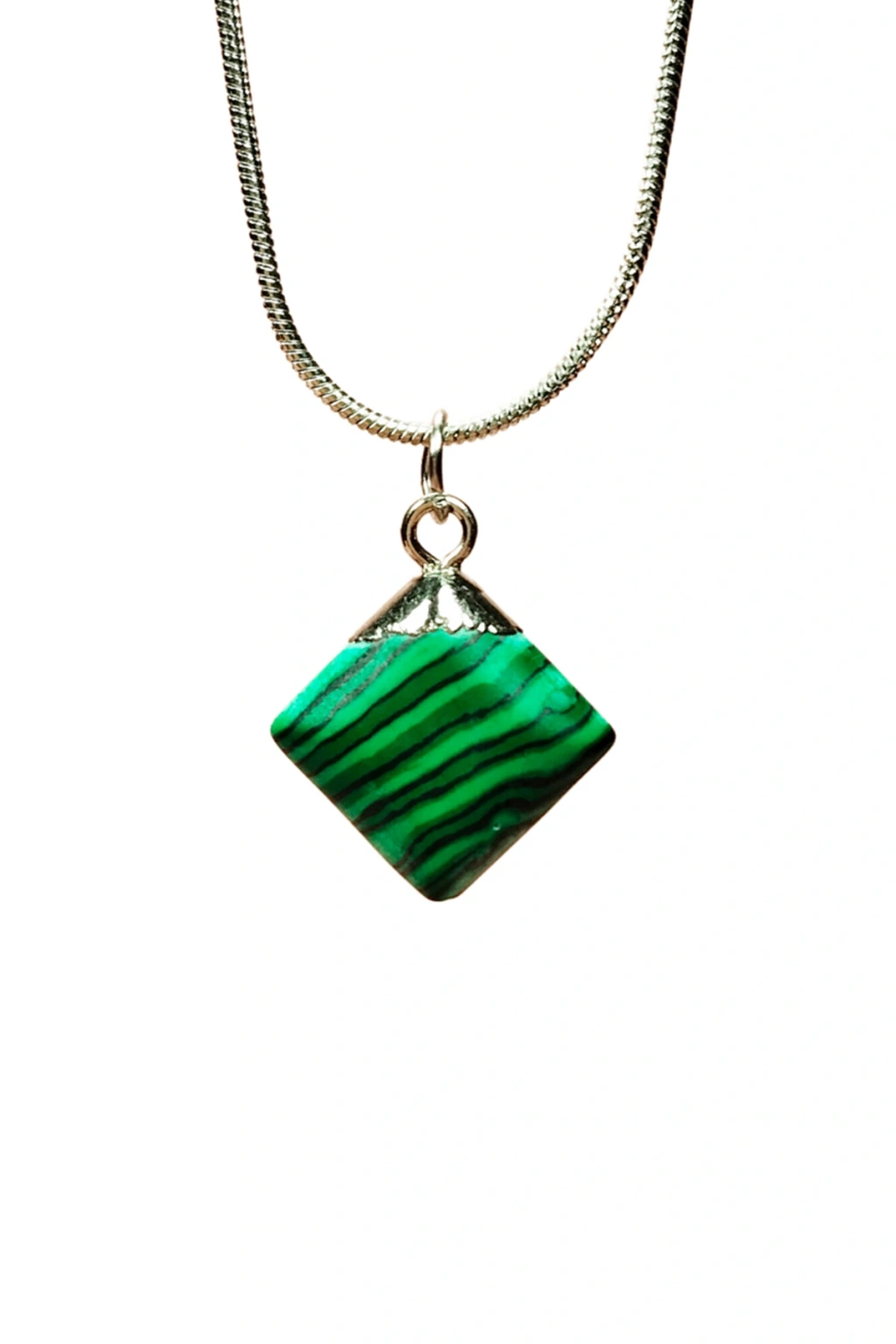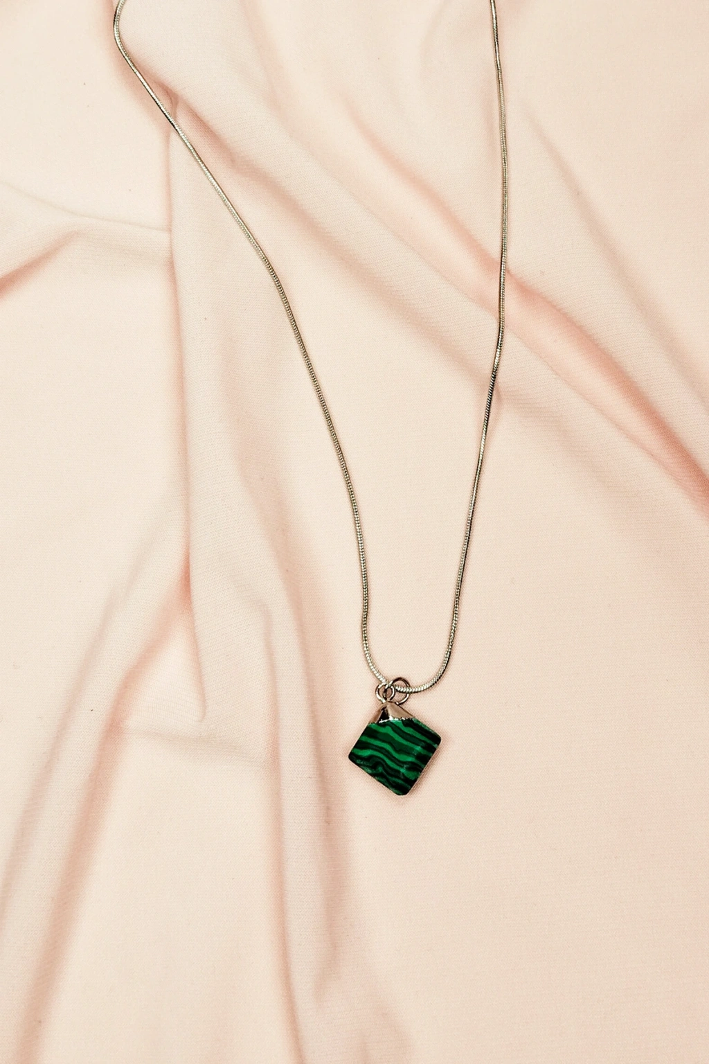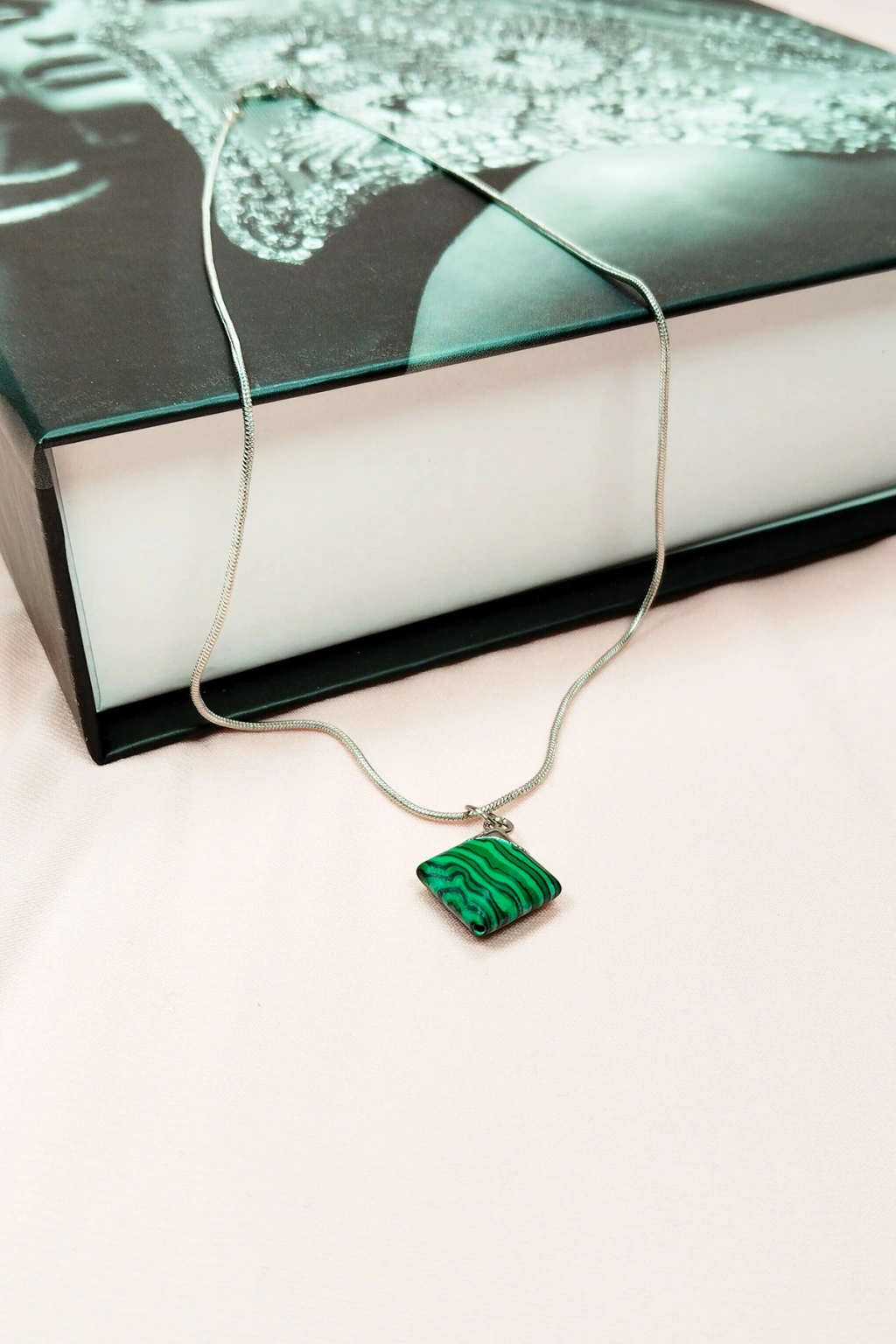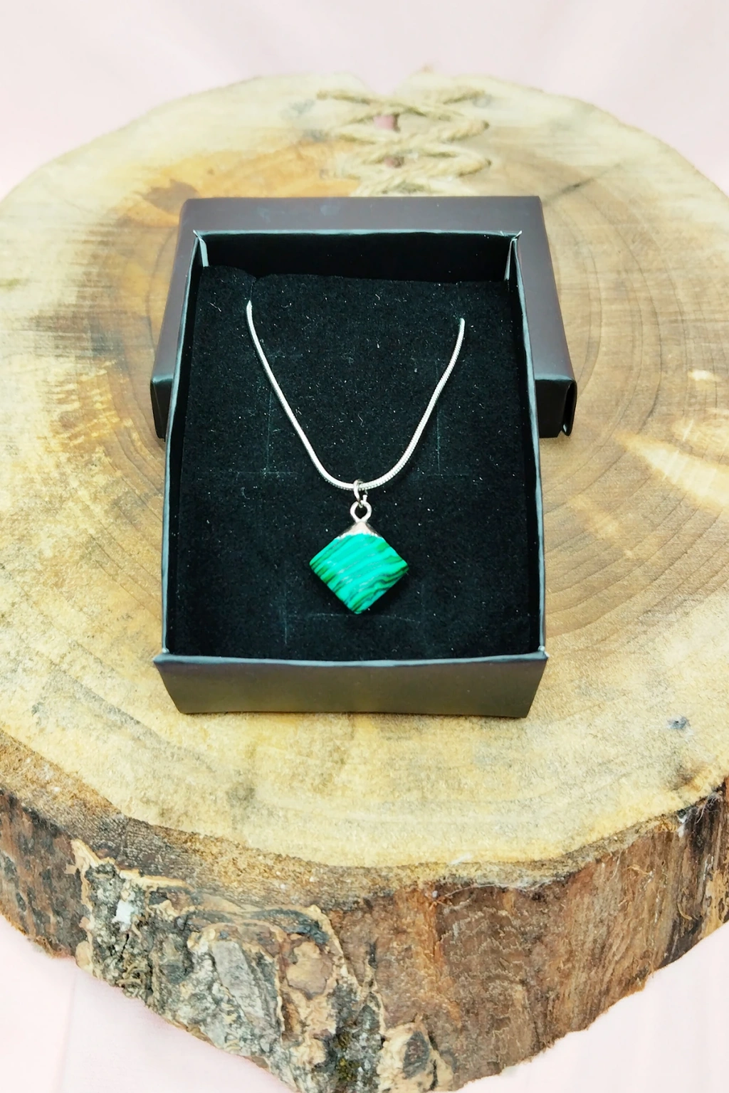 | Malakit Doğal Taşı Zincirli El Yapımı Kolye Uç: 1,5 cm Zincir: 20 cm Kutulu |