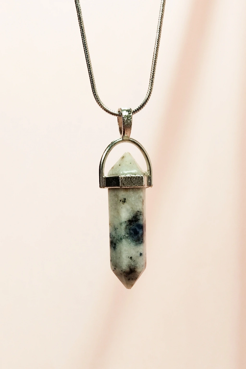 | Mavi Kuvars Doğal Taşı Zincirli El Yapımı Tasarımlı Kolye Uç: 3,5 cm Zincir: 20 cm Kutulu |