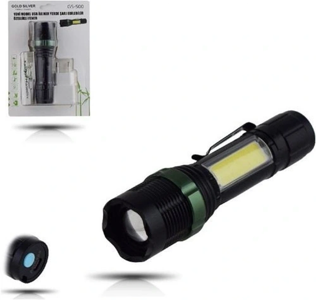 Metal El Feneri USB Şarjlı 4 Kademeli Zoomlu GS 500