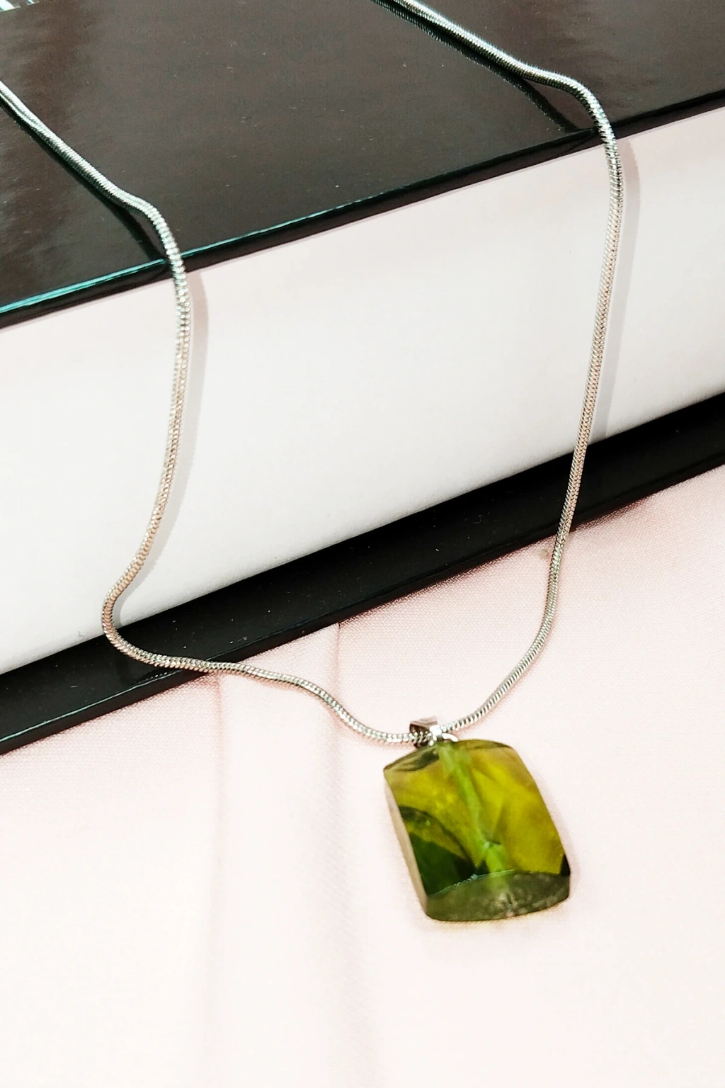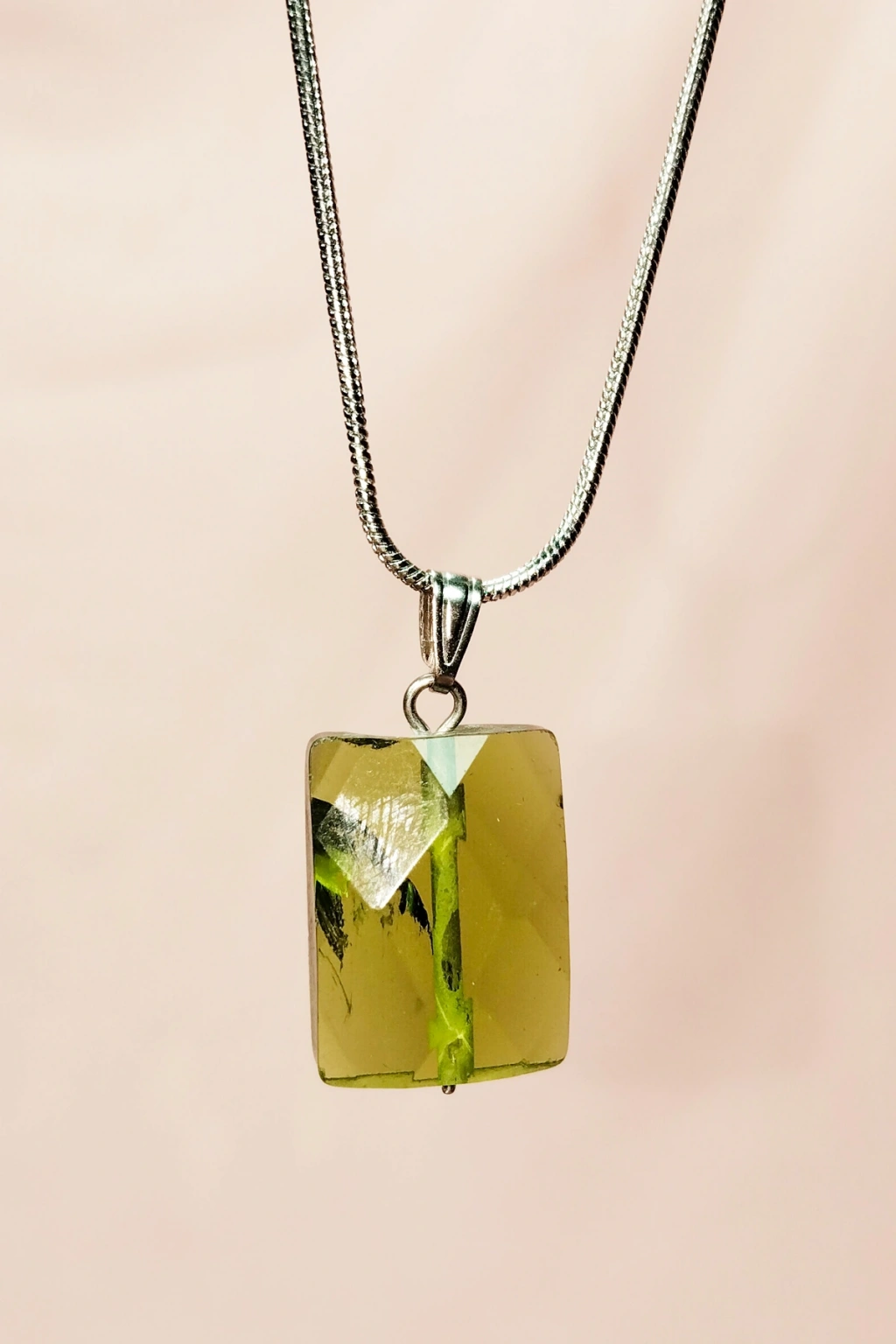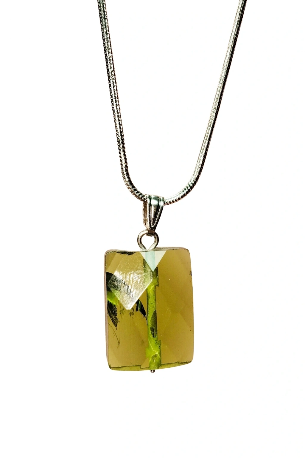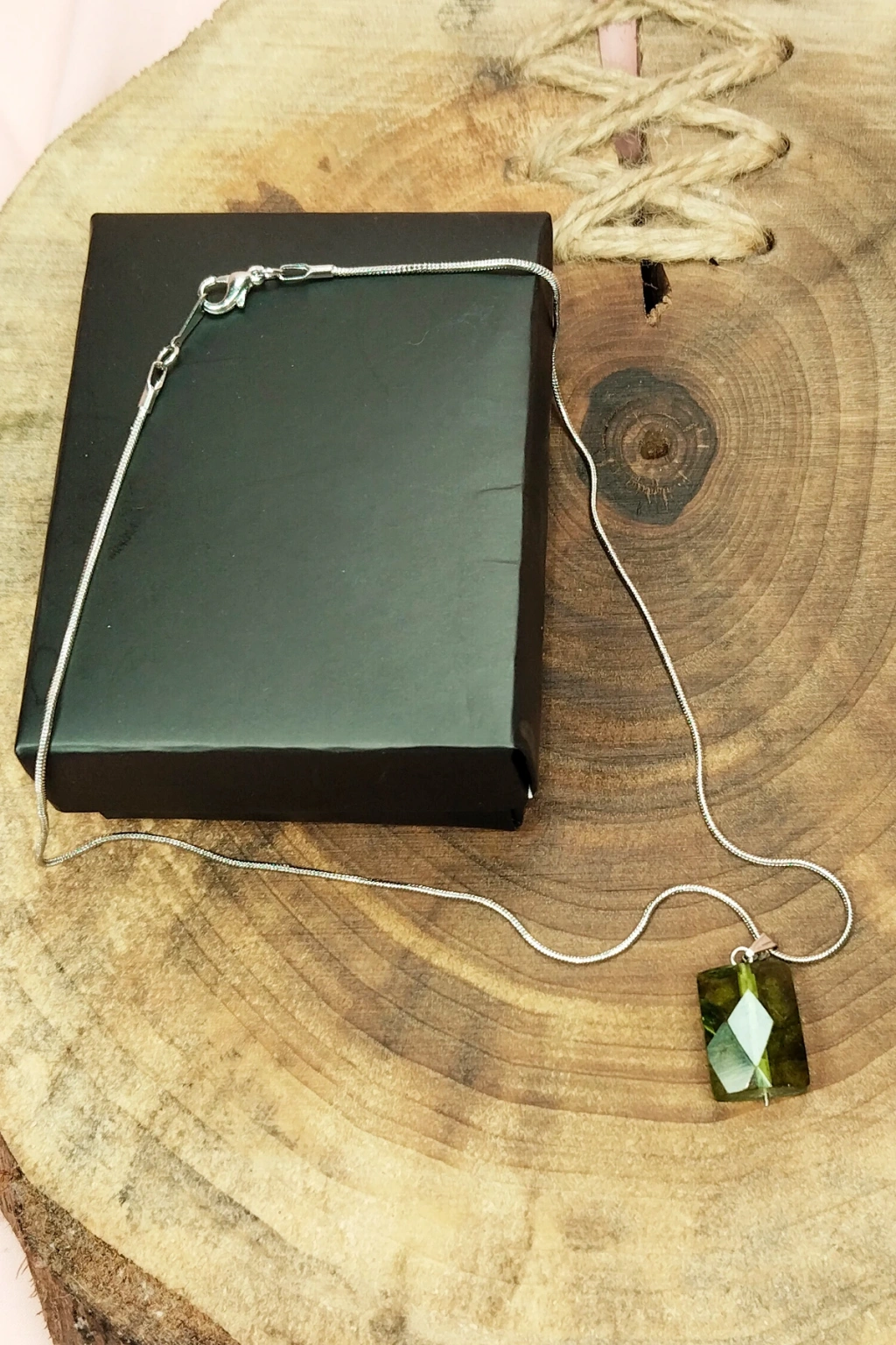 | Moldavit Doğal Taşı Zincirli El Yapımı Kolye Uç: 2 cm Zincir: 20 cm Kutulu |